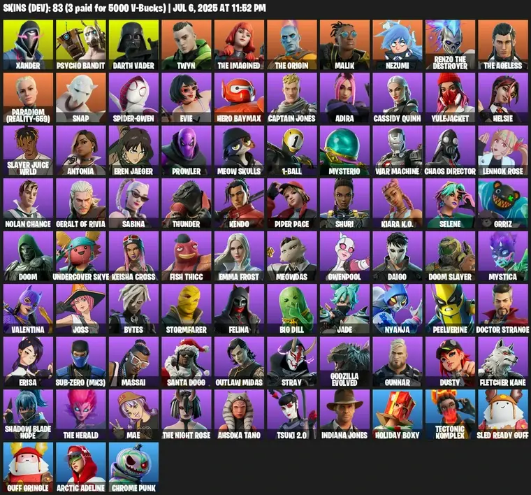【 83 SKINS】Psycho Bandit ✴️ Xander ✴️ Tectonic Komplex ✴️ Indiana Jones ✴️ 850 VB ✴️ XBOX/PSN/PC FULL ACCESS