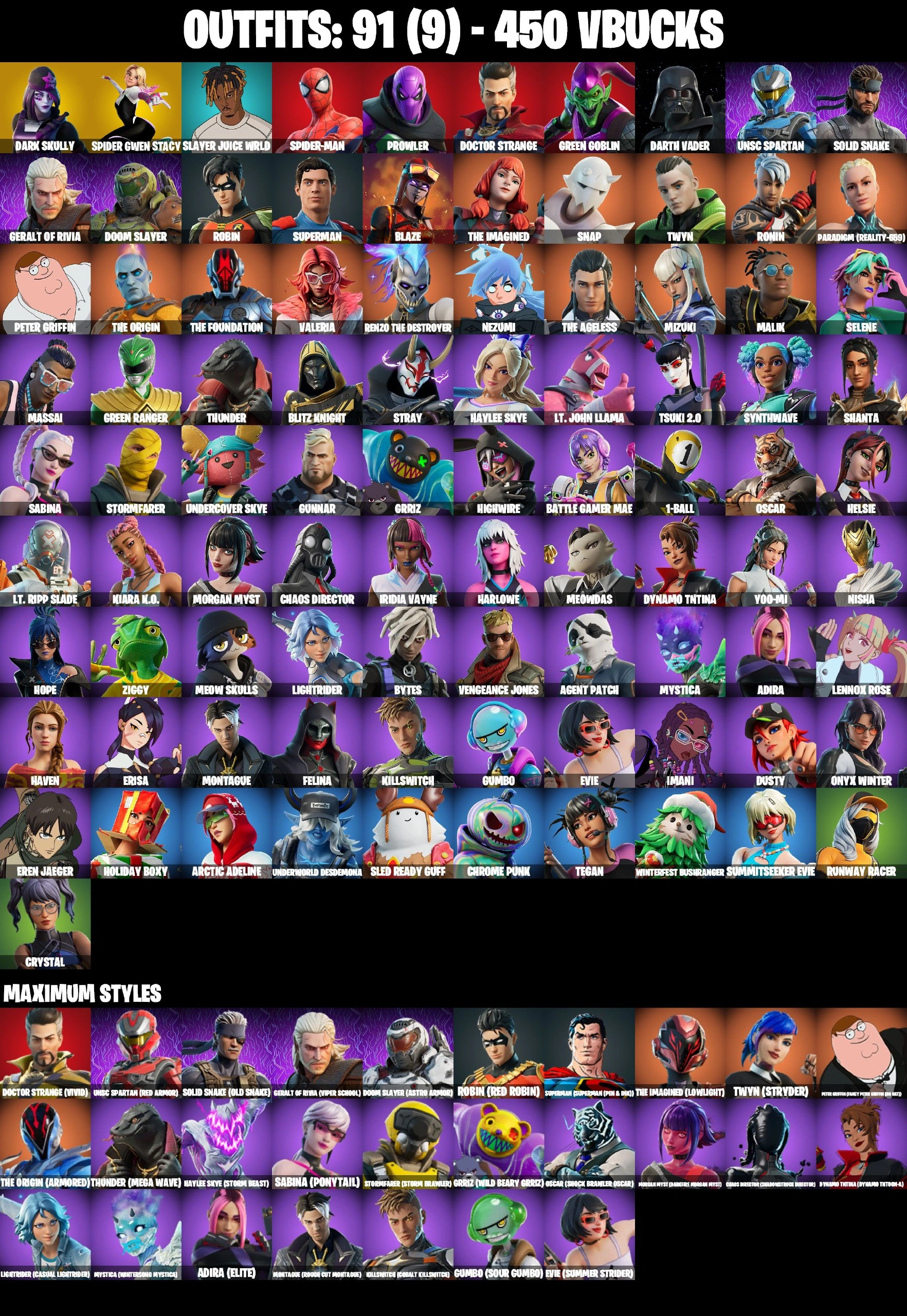❤️ 91 SKINS ❤️ DARK SKULLY ❤️ SPIDER-GWEN STACY ❤️ SPIDER-MAN ❤️ DARTH VADER ❤️ GET GRIDDY ❤️ STAR WAND ❤️ EREN JAEGER ❤️ MYSTICA MAX ❤️ EVIE MAX ❤️ CHAOS DIRECTOR MAX ❤️ HAYLEE SKYE MAX ❤️ TSUKI 2.0 ❤️ EVIE ❤️ SUMMITSEEKER EVIE