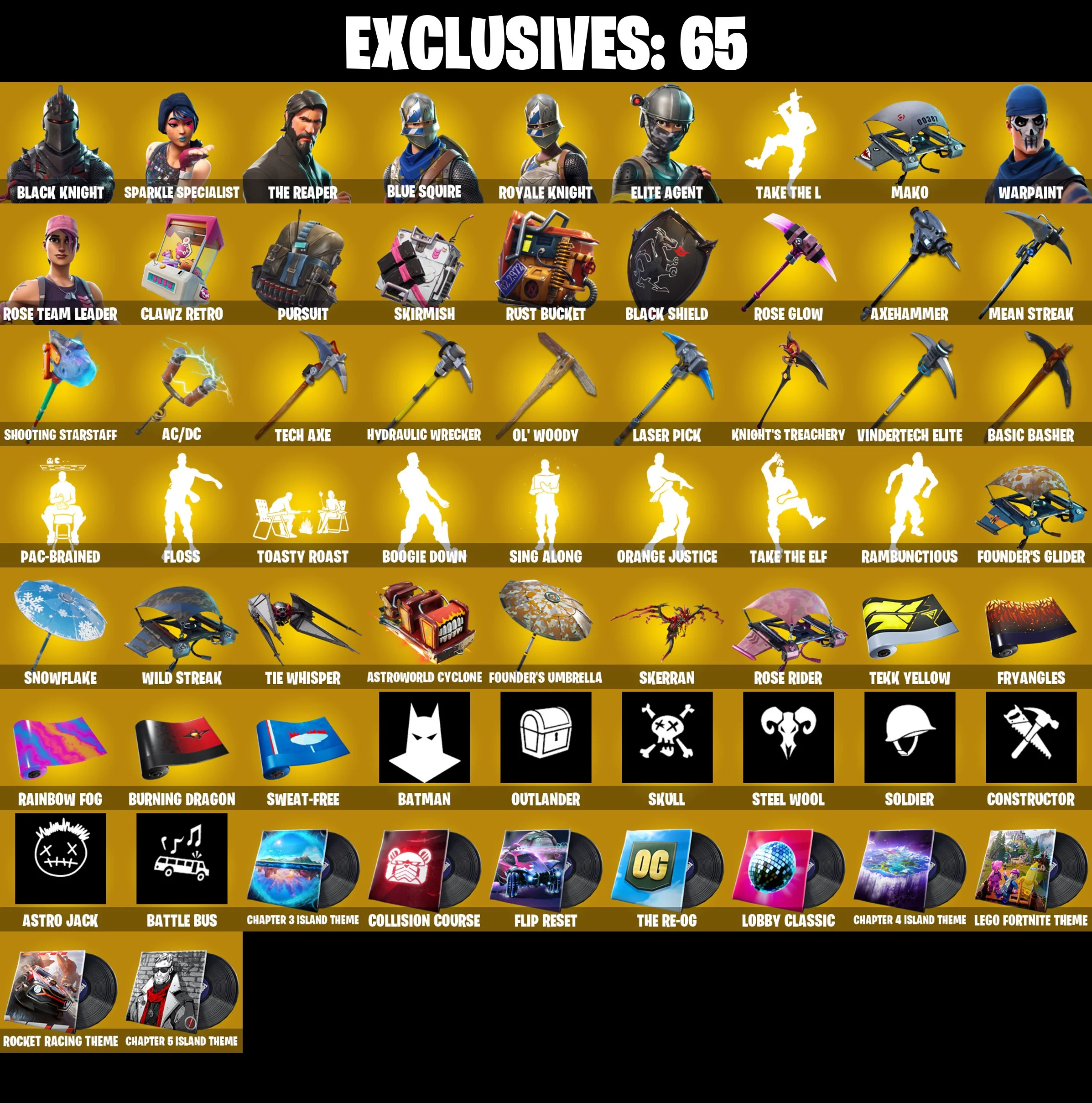 ๐ฅ๐๐ฅ EXCLUSIVE OFFER ๐ฅ๐๐ฅ 109 SKINS ๐ BLACK KNIGHT ๐ FLOSS ๐ TAKE THE L ๐ THE REAPER ๐ BLUE SQUIRE ๐ ROYALE KNIGHT ๐ ELITE AGENT ๐ STAGE 4 (NO PONYTAIL) ๐ FULL ACCESS ๐ฎ PSN/XBOX/PC ๐ฐ 200