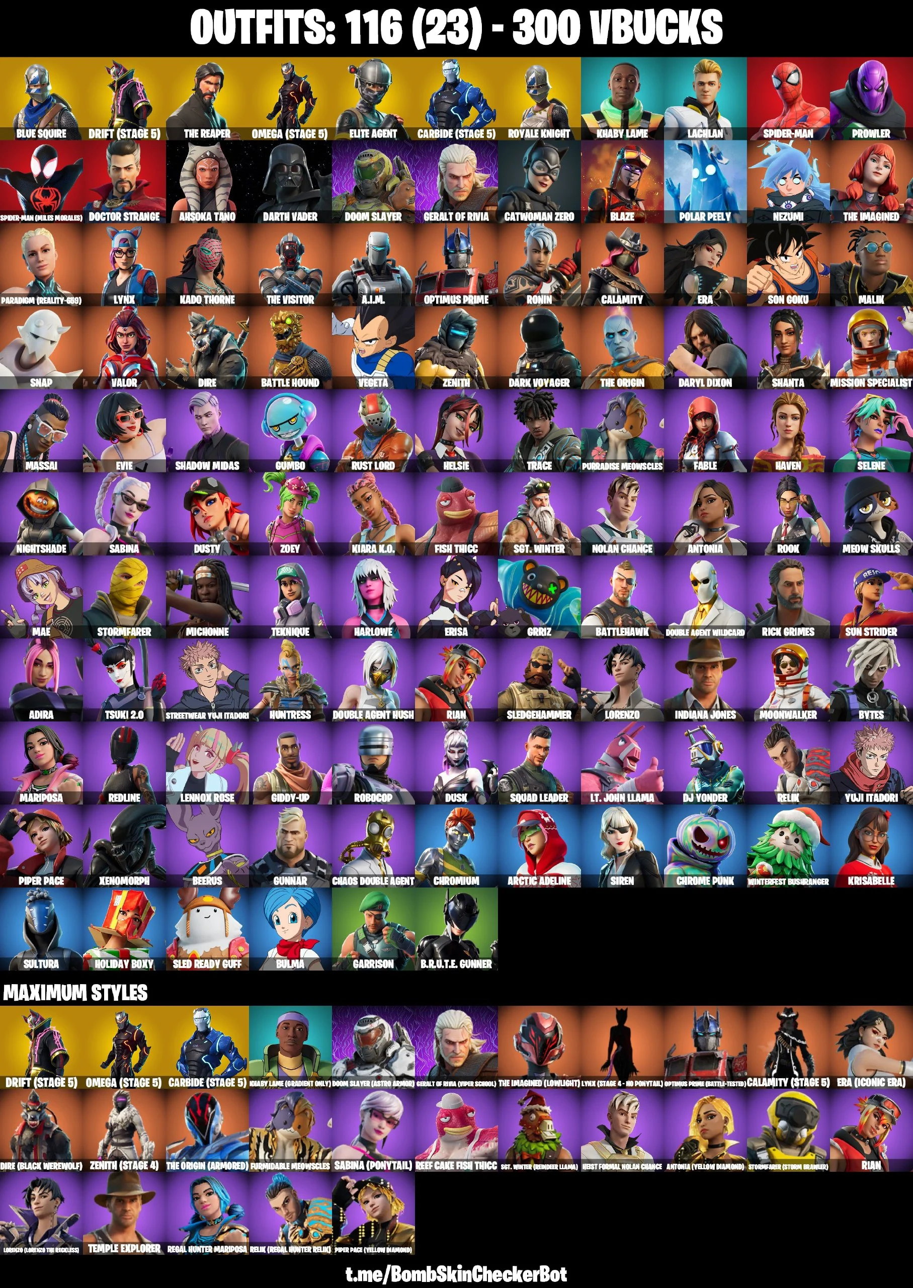 ๐ฅ๐๐ฅ EXCLUSIVE OFFER ๐ฅ๐๐ฅ 116 SKINS ๐ ROYALE KNIGHT ๐ BLUE SQUIRE ๐ THE REAPER ๐ TAKE THE L ๐ ELITE AGENT ๐ OMEGA (STAGE 5) ๐ FULL ACCESS