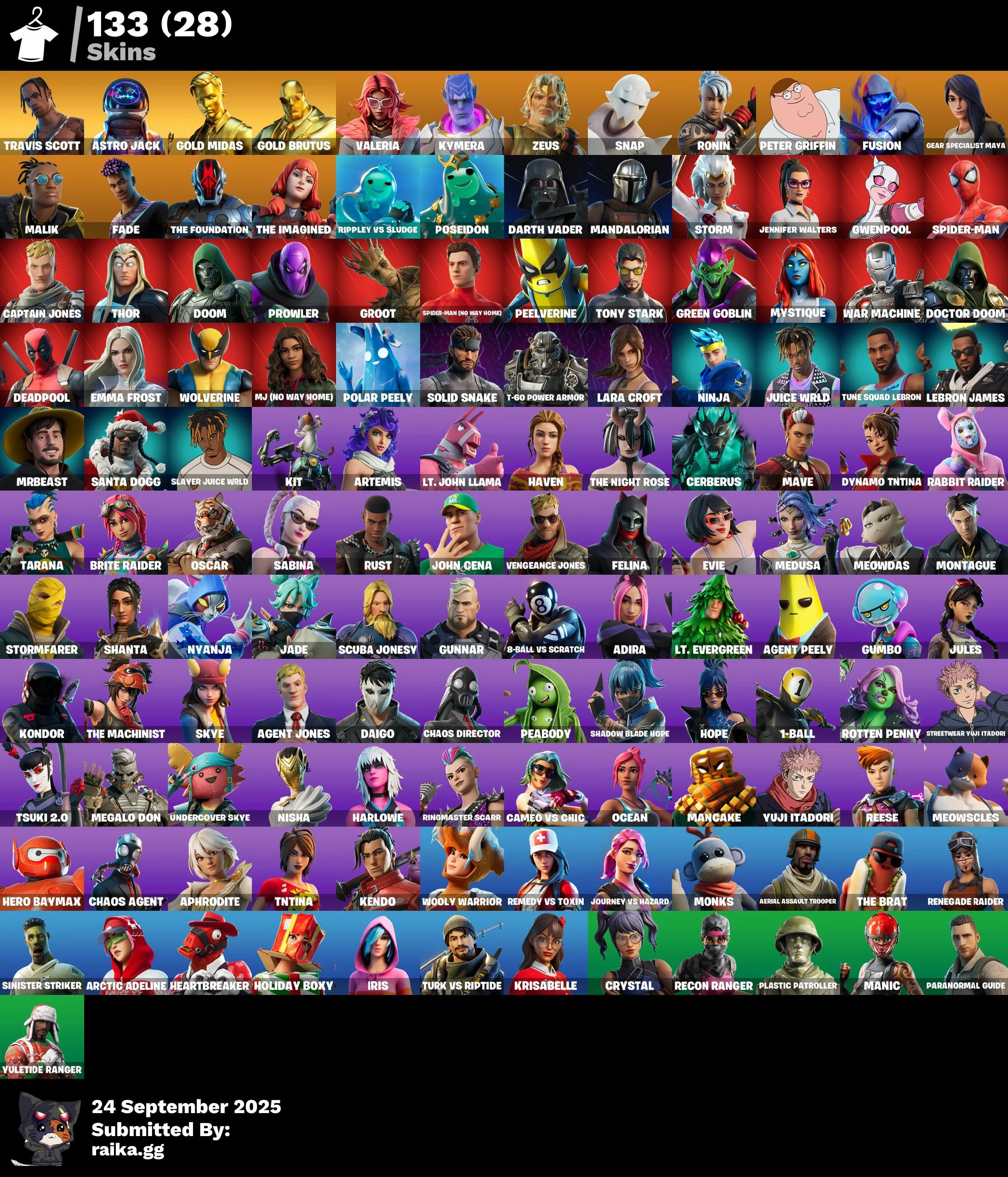 ⭐⭐ EXCLUSIVE OFFER ⭐⭐ 133 skins 🎭 Renegade Raider 🎭 Aerial Assault Trooper | Travis Scott 🎭 Astro Jack 🎭 Gold Midas 🎭 Gold Brutus | Valeria 🎭 Kymera 🎭 Zeus 🎭 Snap💎 FULL ACCESS 🎮 PSN/XBOX/PC