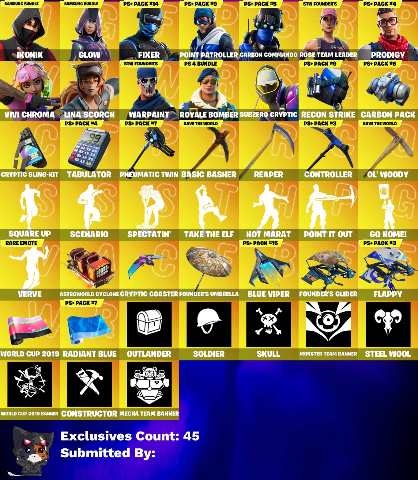 ๐ฅ๐ EXCLUSIVE OFFER ๐๐ฅ 143 SKINS ๐ IKONIK ๐ GLOW ๐ FIXER ๐ SCENARIO ๐ CARBON COMMANDO ๐ PRODIGY ๐ VIVI CHROMA ๐ LINA SCORCH ๐ ROYALE BOMBER ๐ SUBZERO CRYPTIC ๐ RUIN ๐ PETER GRIFFIN ๐ HYBRID ๐ DRIFT ๐ POWER CHORD ๐ 225 VB ๐ OG STW ๐ FULL ACCESS ๐