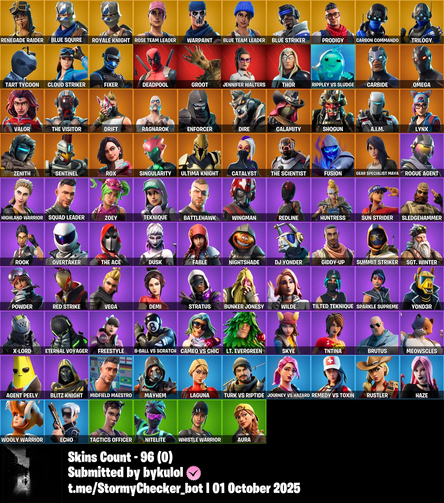 💥🌟💥 EXCLUSIVE OFFER 💥🌟💥 96 SKINS 💎 OG RENEGADE RAIDER 💎 LEVIATHAN AXE 💎 ROYALE KNIGHT 💎 WARPAINT 💎 CONTROLLER 💎 ROSE GLOW 💎 MEAN STREAK 💎 BR SEASON 1 💎 FULL ACCESS