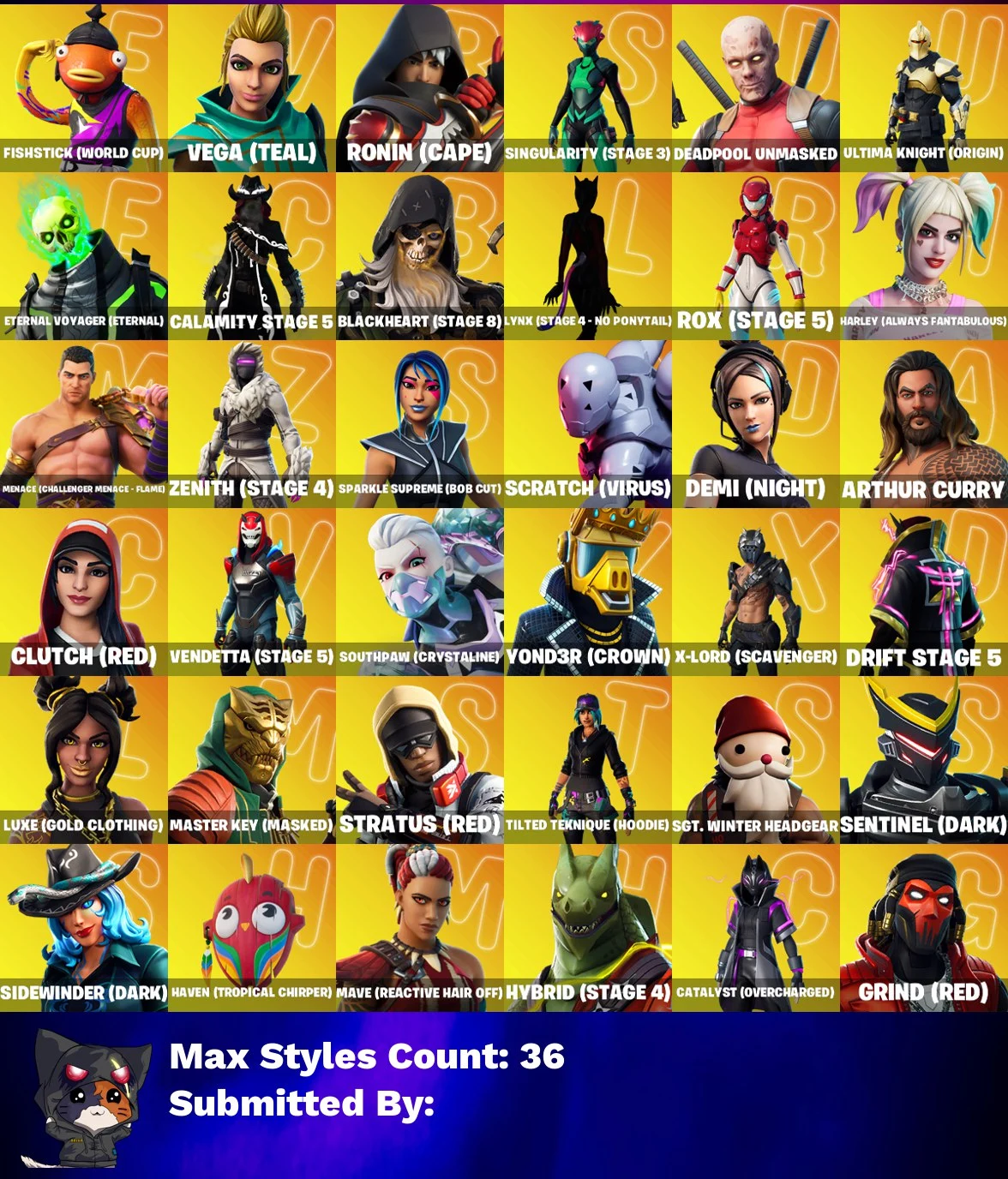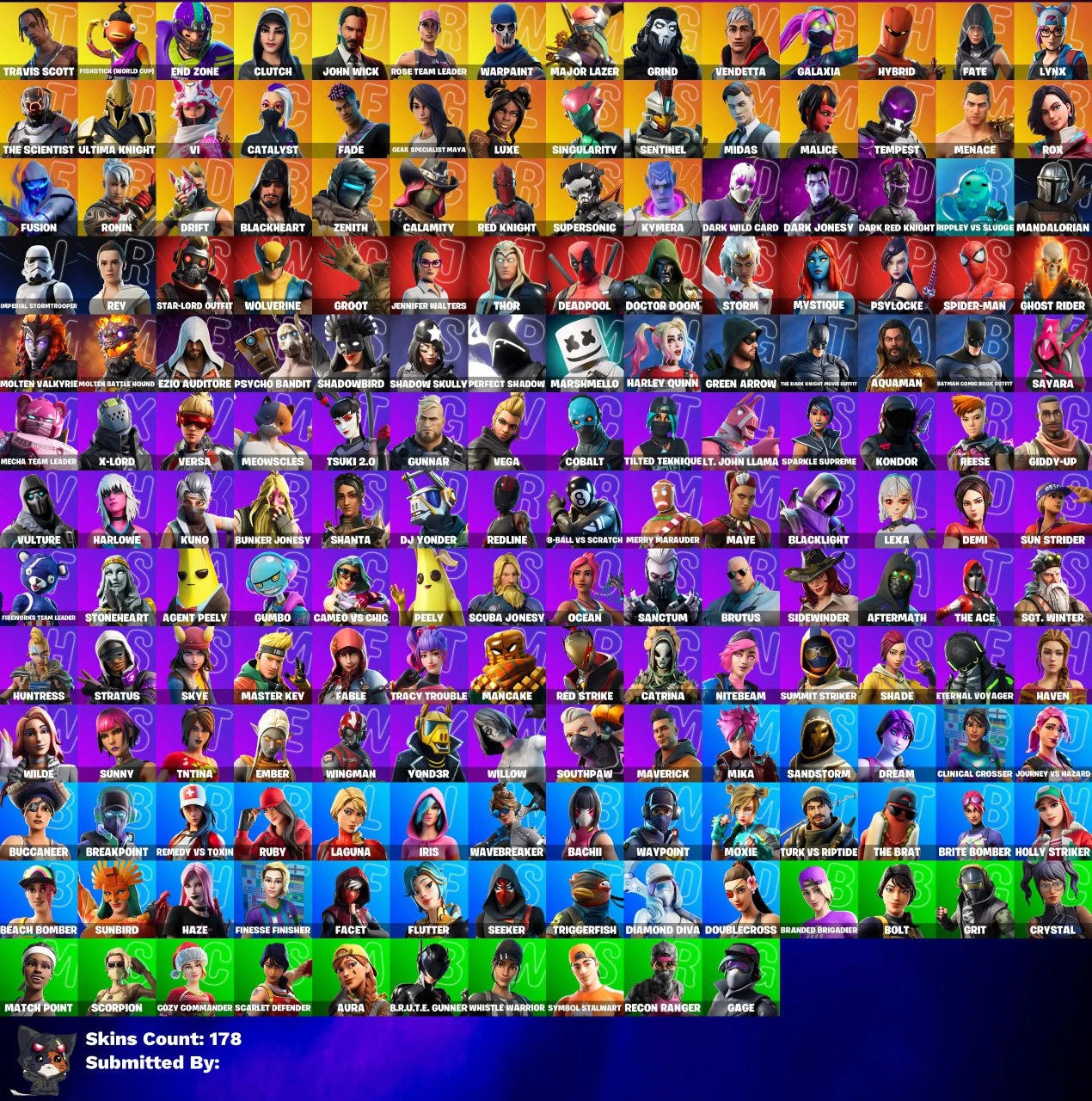 ๐ฅ๐ LIMITED OFFER ๐๐ฅ 178 SKINS ๐ TRAVIS SCOTT ๐ REAPER ๐ END ZONE ๐ CLUTCH ๐ FISHSTICK (WORLD CUP) ๐ JOHN WICK ๐ MAJOR LAZER ๐ GRIND ๐ CACTUS JACK ๐ BASIC BASHER ๐ LAZER AXE ๐ OL' WOODY ๐ HOT MARAT ๐ LAZER BLAST ๐ 925 VB ๐ OG STW ๐ FULL ACCESS ๐
