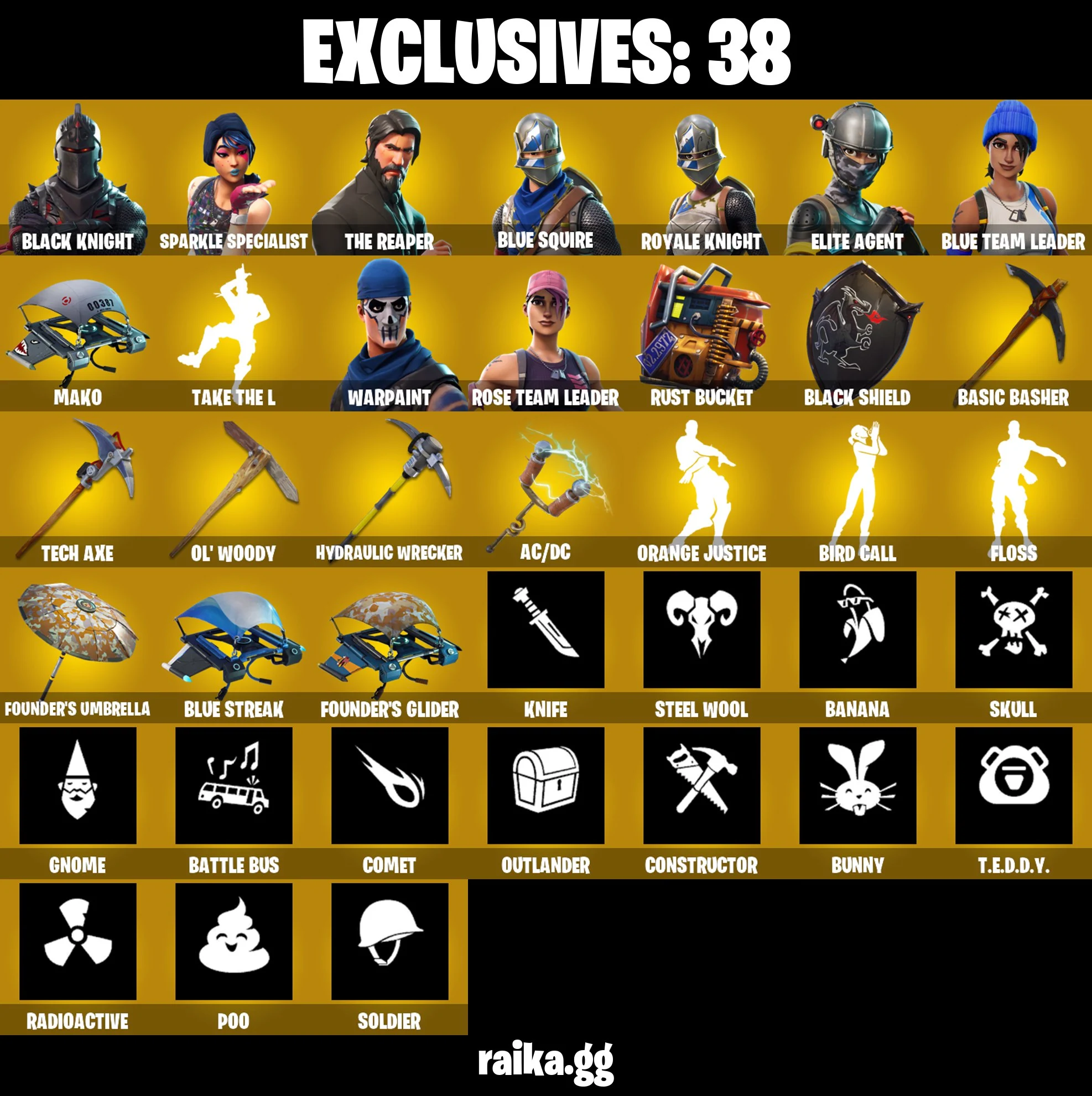 🎁✨LIMITED OFFER✨🎁 54 SKINS 🌙 OG STW 🌙 BLACK KNIGHT 🌙 SPARKLE SPECIALIST 🌙 THE REAPER 🌙 BLUE SQUIRE 🌙 ROYALE KNIGHT 🌙 ELITE AGENT 🌙 BLUE TEAM LEADER 🌙 MAKO 🌙 TAKE THE L 🌙 GHOUL TROOPER 🌙 THE WORM 🌙 AC/DC 🌙 AGENT PEELY 🌙 505 VBUCKS ⚡️PC/PSN/XBOX⚡️