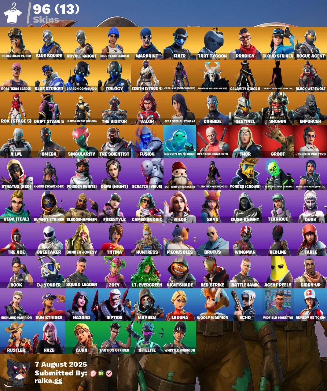 💥🌟💥 OG 💥🌟💥 96 SKINS 💎 OG RENEGADE RAIDER 💎 LEVIATHAN AXE 💎 ROYALE KNIGHT 💎 XOXO 💎 GOOD GUY 💎 DEEP END 💎 MEAN STREAK 💎 THE WORM 💎 SNOWSHAKER 💎 FULL ACCESS