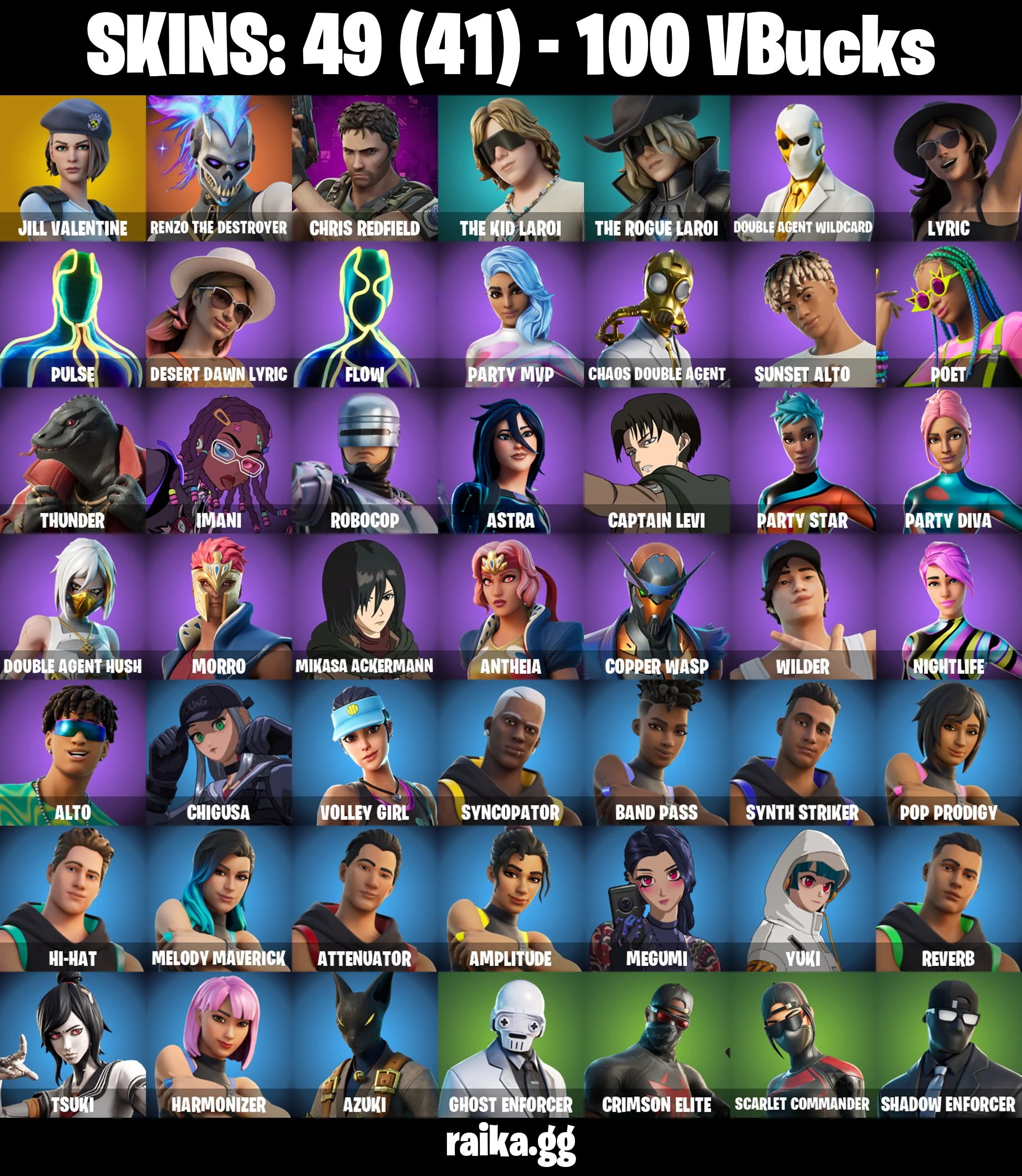 Original Email ✅ Inactive for 3 years | 49 skins | Captian Levi | Mikasa Ackermann | Jill Valentine | Renzo the Destroyer | Chris Redfield | The Kid LAROI | The Rogue LAROI | Double Agent Wildcard | Lyric | Pulse | 100 VB