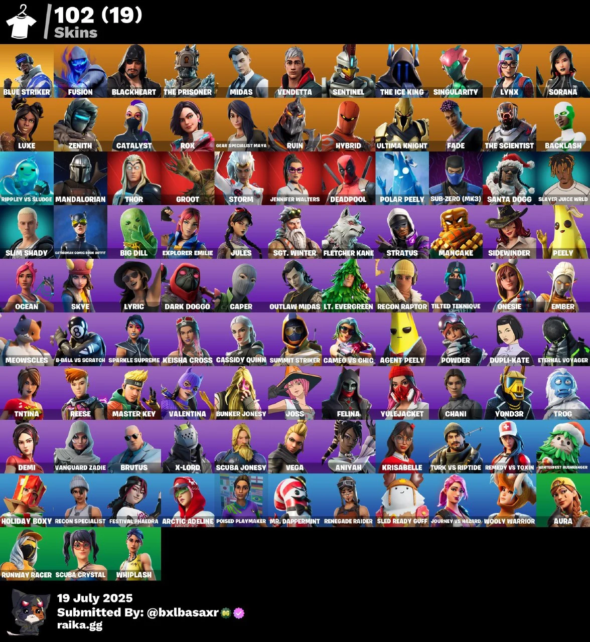 [PC] 102 skins | Renegade Raider | Blue Striker | Fusion | Blackheart | The Prisoner | Midas | Vendetta | Sentinel | The Ice King | Singularity | 300 VB