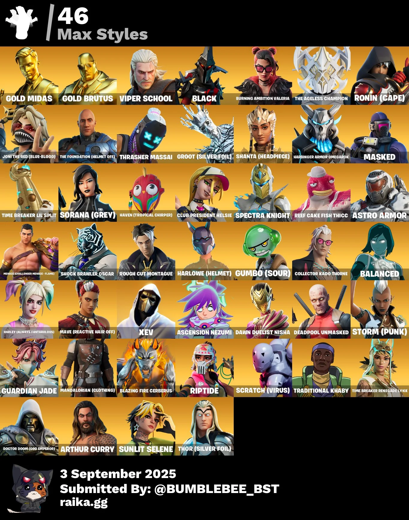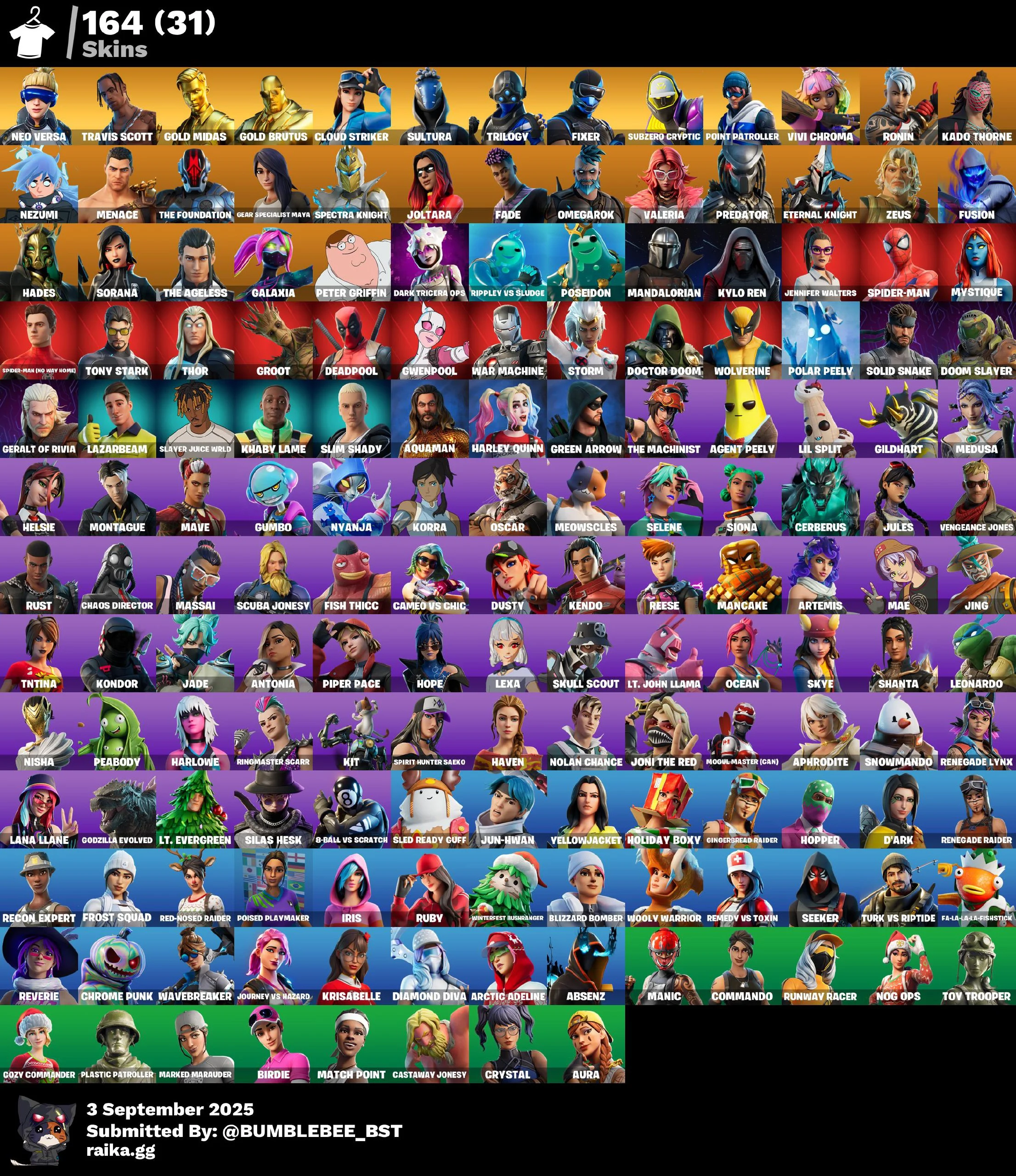 [PC] 164 skins | Renegade Raider | Neo Versa | Travis Scott | Gold Midas | Gold Brutus | Cloud Striker | Sultura | Trilogy | Fixer | Subzero Cryptic | 200 VB