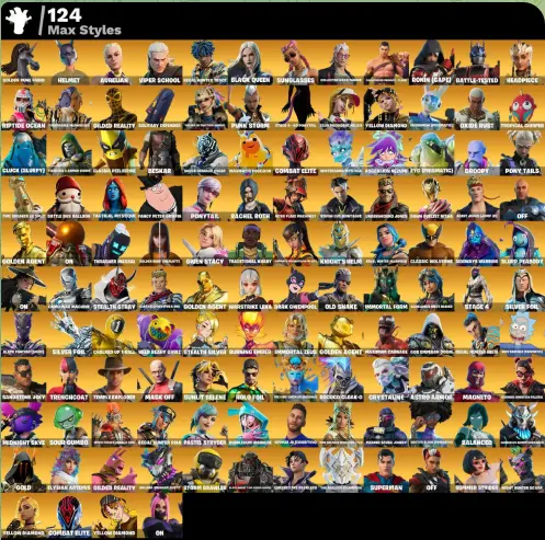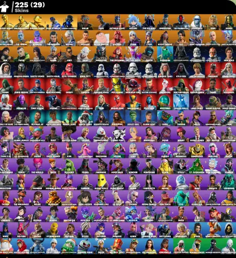 (PC PSN XBOX) 225 skins | Gold Brutus | Gold Meowscles | Gold Midas | Carbon Commando | Blue Striker | The Cube Queen | The Imagined | The Foundation / LARA CROFT / CAPTAIN AMERICA / AANG / EREN JAEGET / SPIDER-GWEN
