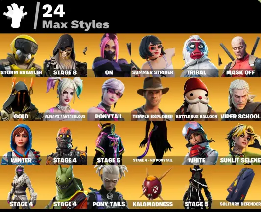 (PC PSN XBOX) 91 SKINS / LEON S. KENNEDY / FA / ELITE AGENT / OG STW / TAKE THE L / ORANGE JUSTICE / Trilogy | Cloud Striker | Blue Striker | Point Patroller | Blackheart | Krampus | Dark Voyager | 700 VB / HARLEY QUINN / LARA CROFT / DEADPOOL