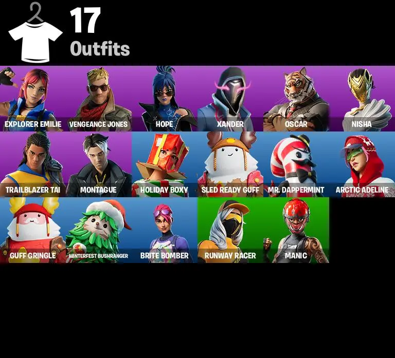【PC/NS/PSN】 17 skins 🔥 Xander 🔥 Explorer Emilie 🔥 Montague 🔥 Hope 🔥 Nisha 🔥 Trailblazer Tai 🔥 Vengeance Jones 🔥 Oscar 🔥 100 VB