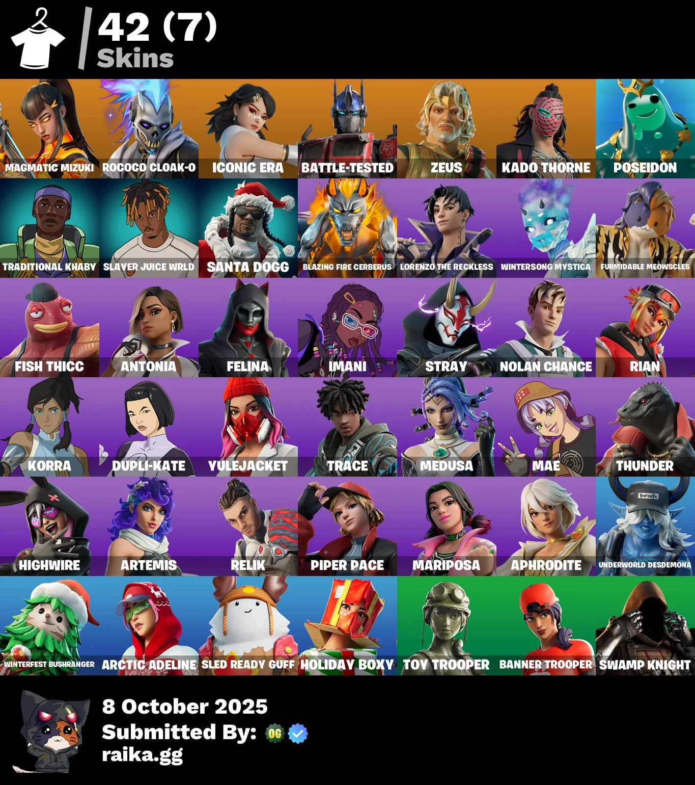 [PC/PSN] 42 skins | Magmatic Mizuki | Rococo Cloak-o | Iconic Era | Battle-Tested | Zeus | Kado Thorne Bek94