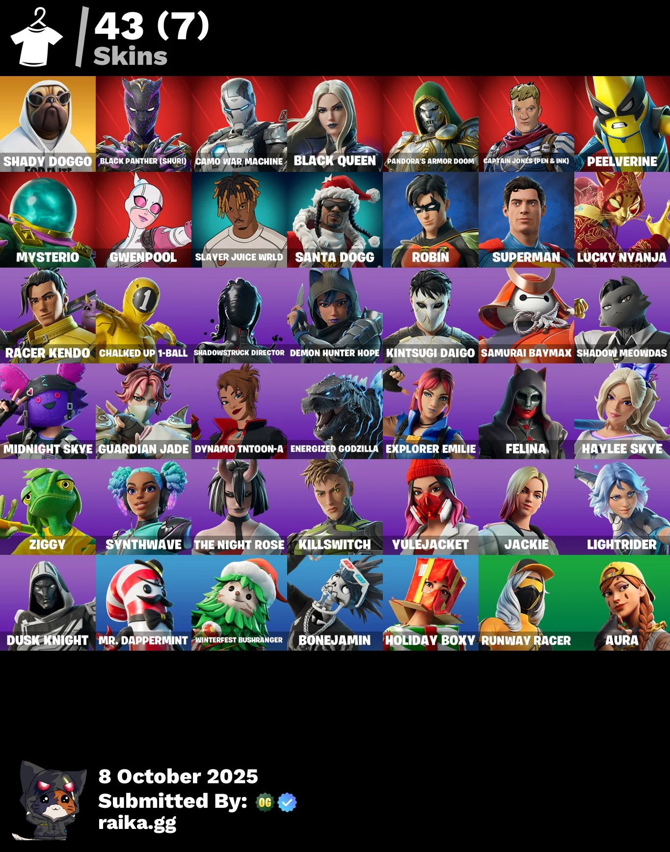 [PC/PSN] 43 skins | Aura | Shady Doggo | Jabba Switchway | Black Panther (Shuri) | Camo War Machine Bek111