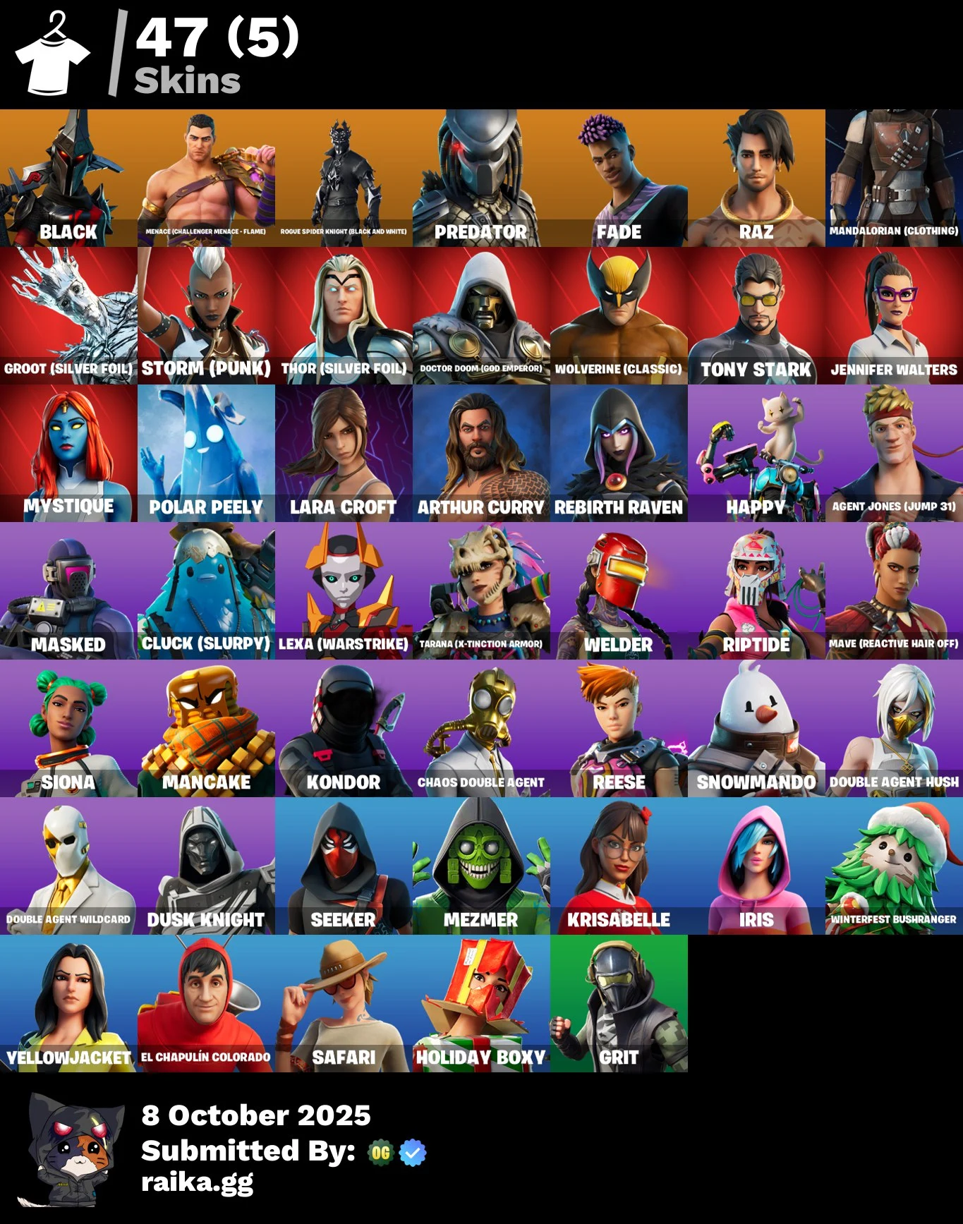 [PC/PSN] 47 skins | Lara Croft | Tony Stark | Mystique | Get Griddy | Black Bek98