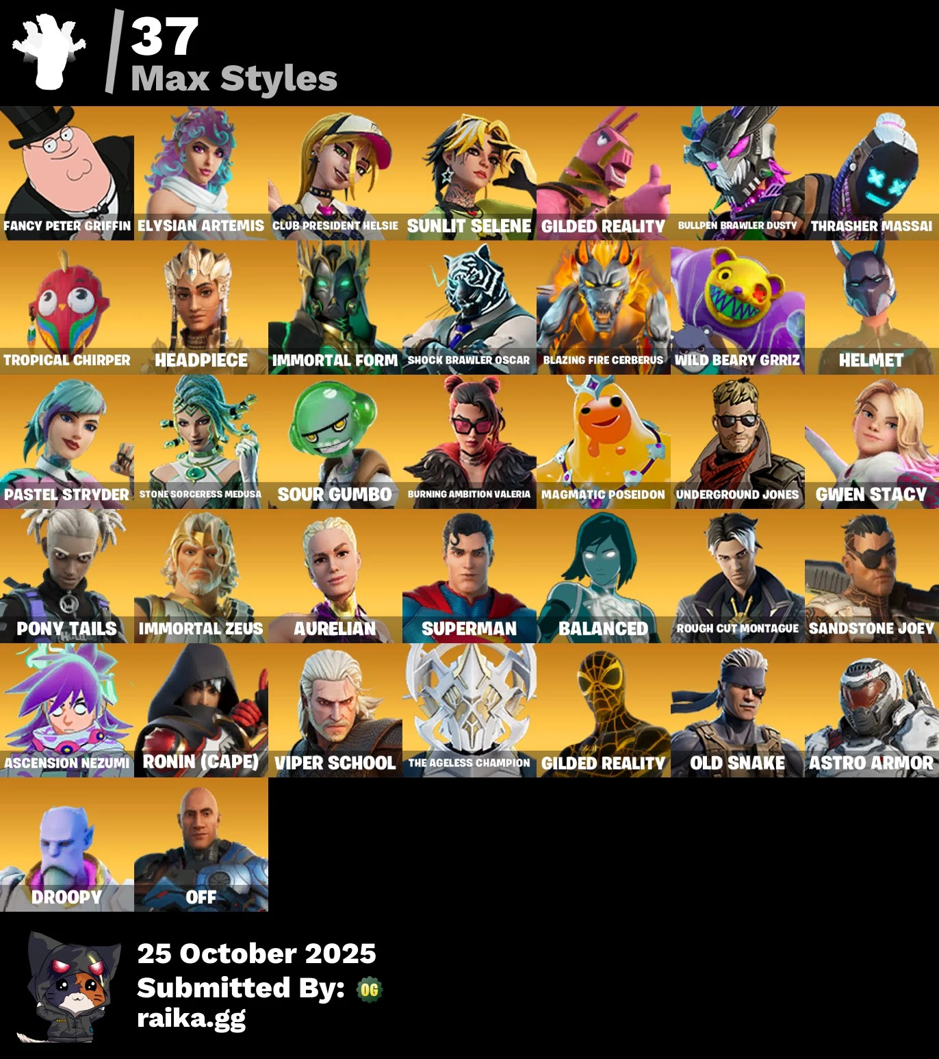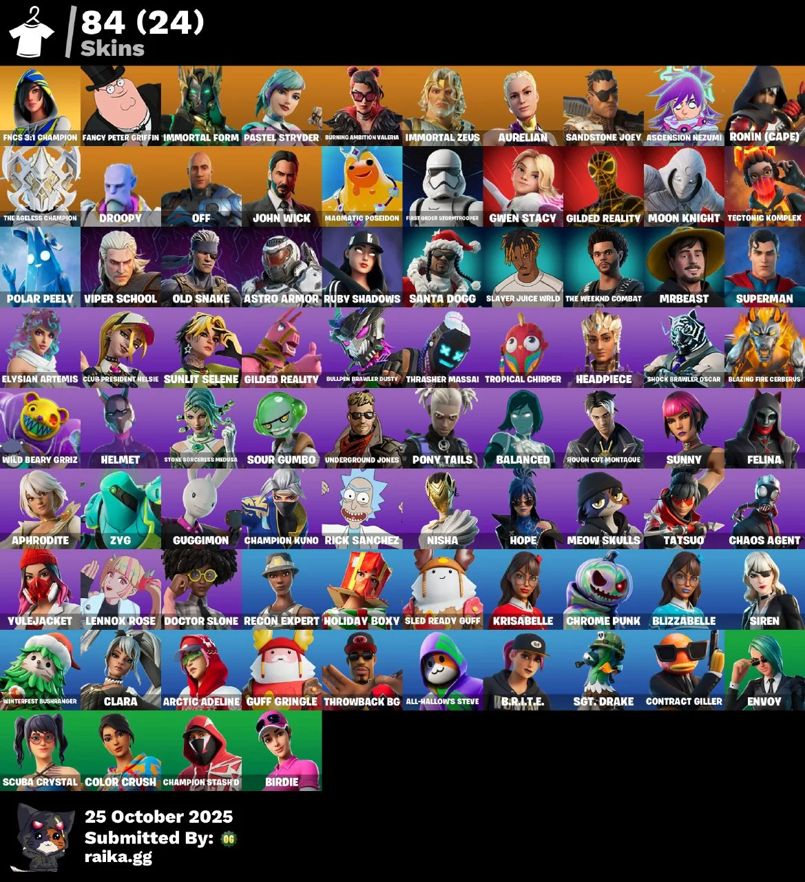 [PC/PSN] 84 skins | Siren | Champion Kuno | Jabba Switchway | Moon Knight | Get Griddy | MrBeast lai740