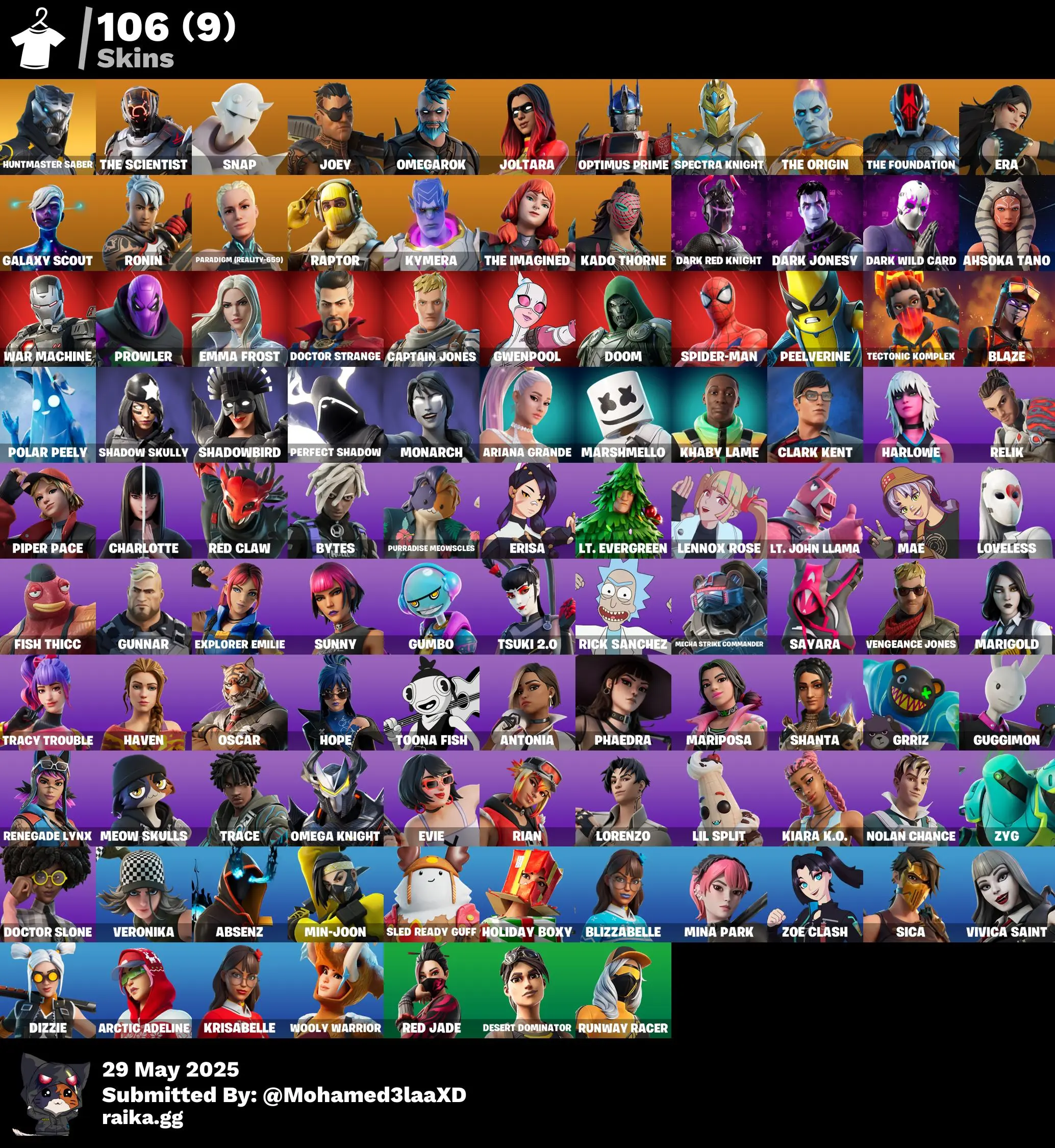 ⭐[PC/PSN/XBOX] 106 skins | Huntmaster Saber | The Scientist | Snap | Joey | Omegarok | Joltara | Optimus Prime | Spectra Knight | The Origin | The Foundation | 150 VB
