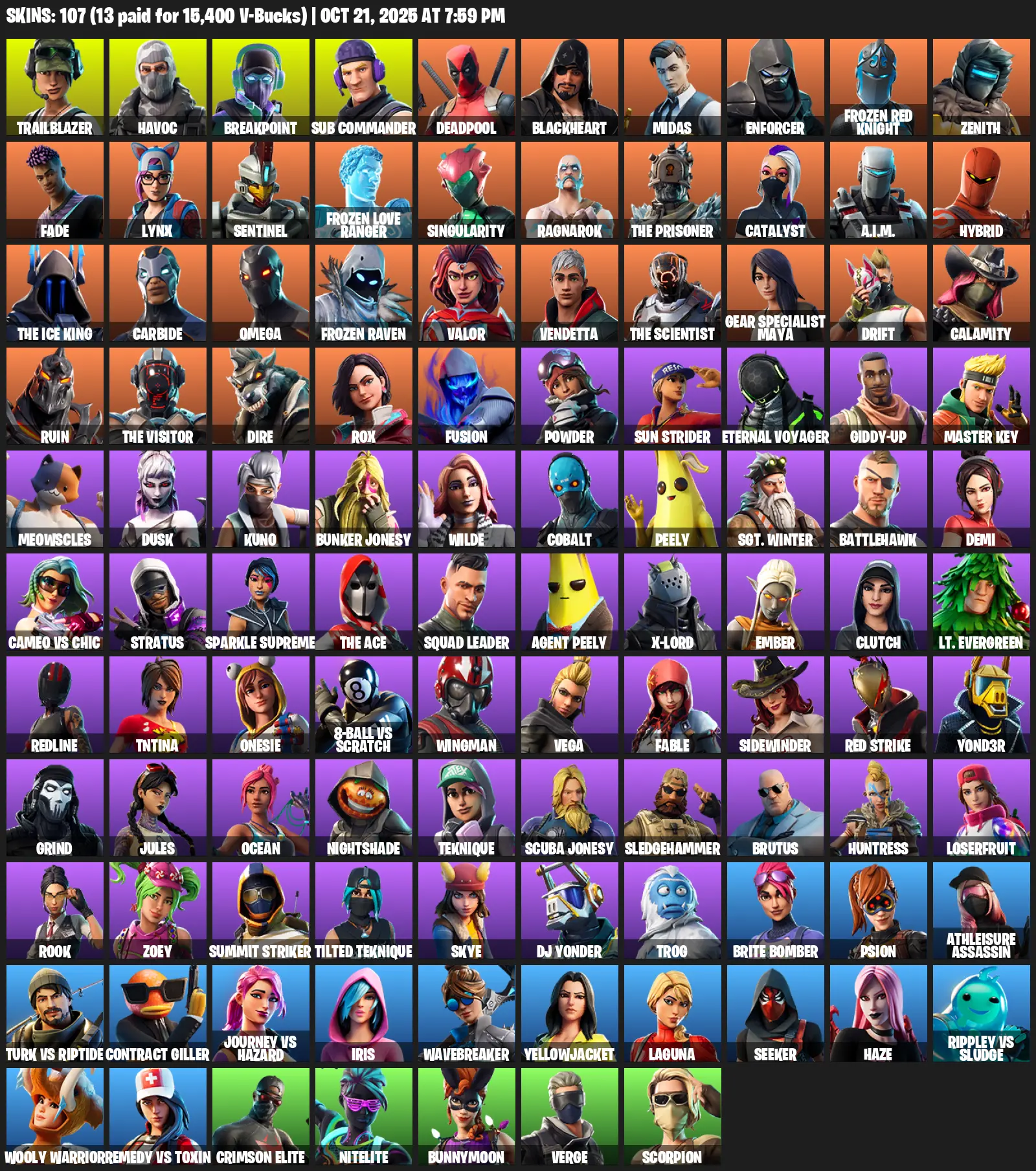 [PC/PSN/XBOX] | 107 skins | Omega | Trailblazer | Havoc | Breakpoint | Sub Commander | Deadpool | Blackheart | Midas | Enforcer | S4G
