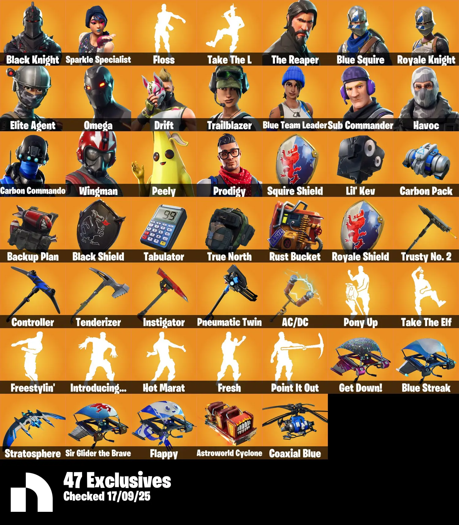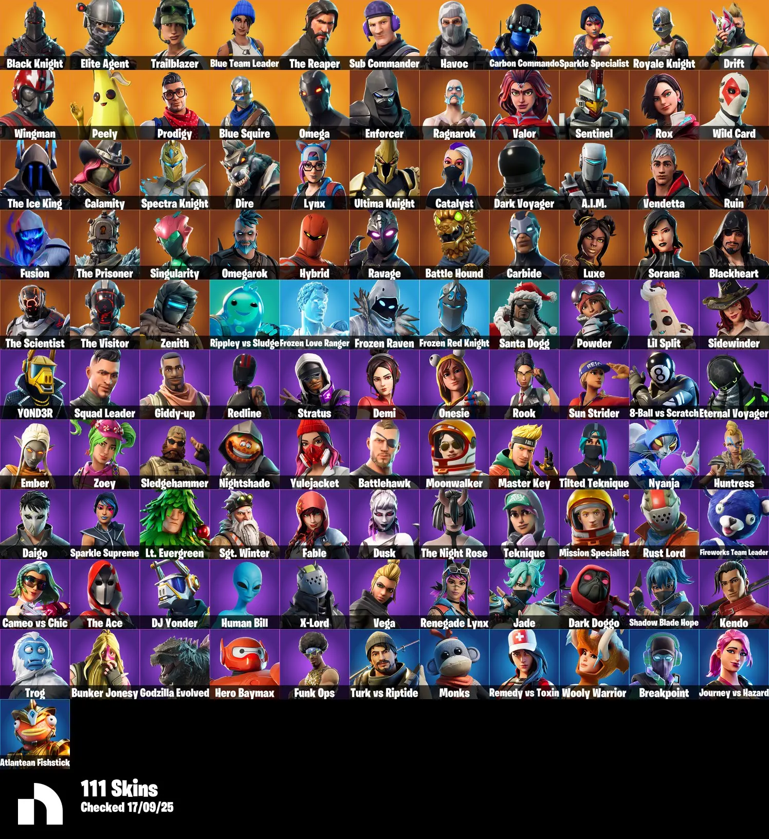 [PC/PSN/XBOX] 111 Skins + Black Knight + Sparkle Specialist + Floss + Take The L + The Reaper + Blue Squire + Royale Knight + 4300 VB