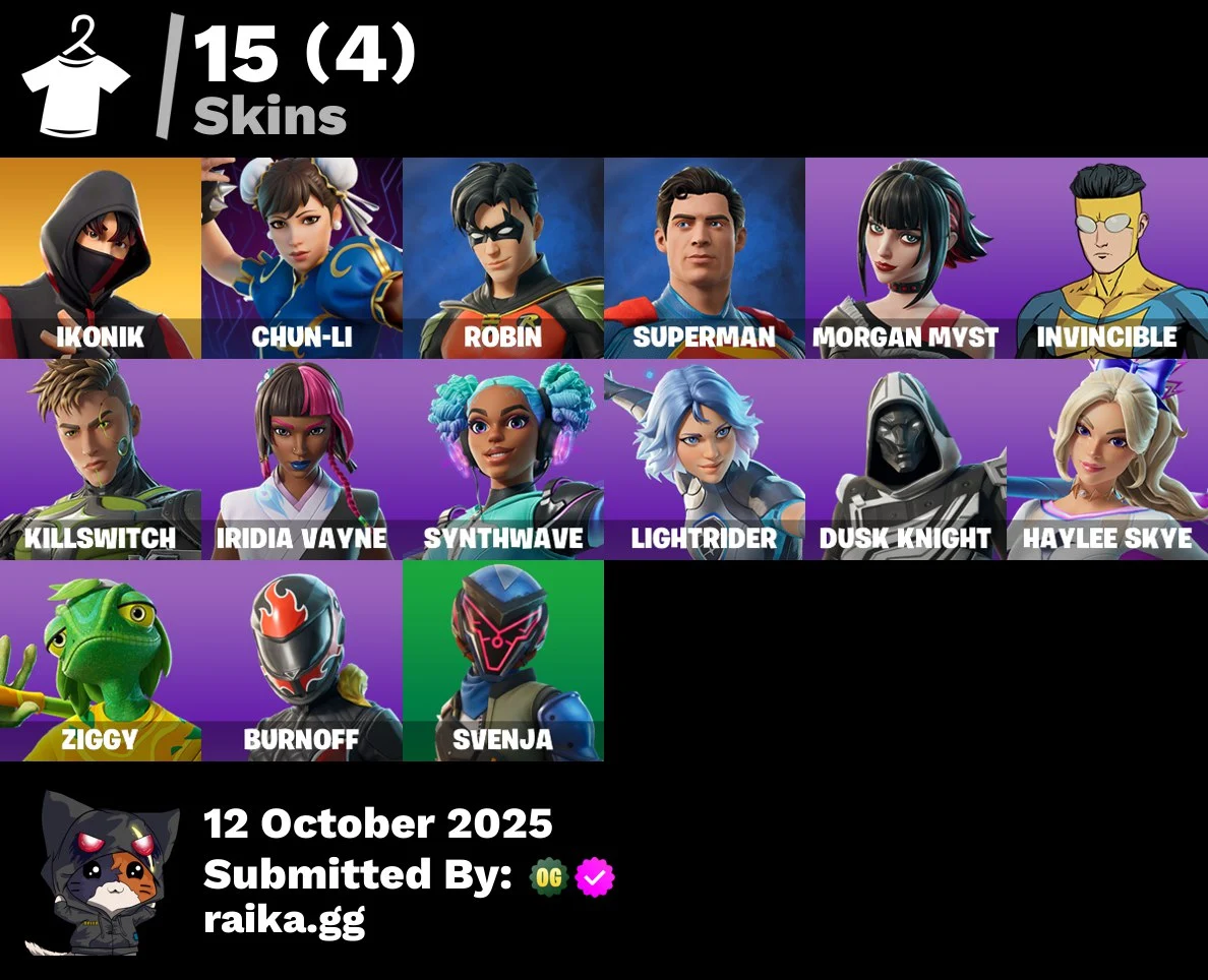 [PC/PSN/XBOX] 15 skins | IKONIK | Chun-Li | Robin | Superman | Morgan Myst | Invincible | Killswitch | Iridia Vayne | Synthwave | Lightrider | Blitz Knight | 0 VB
