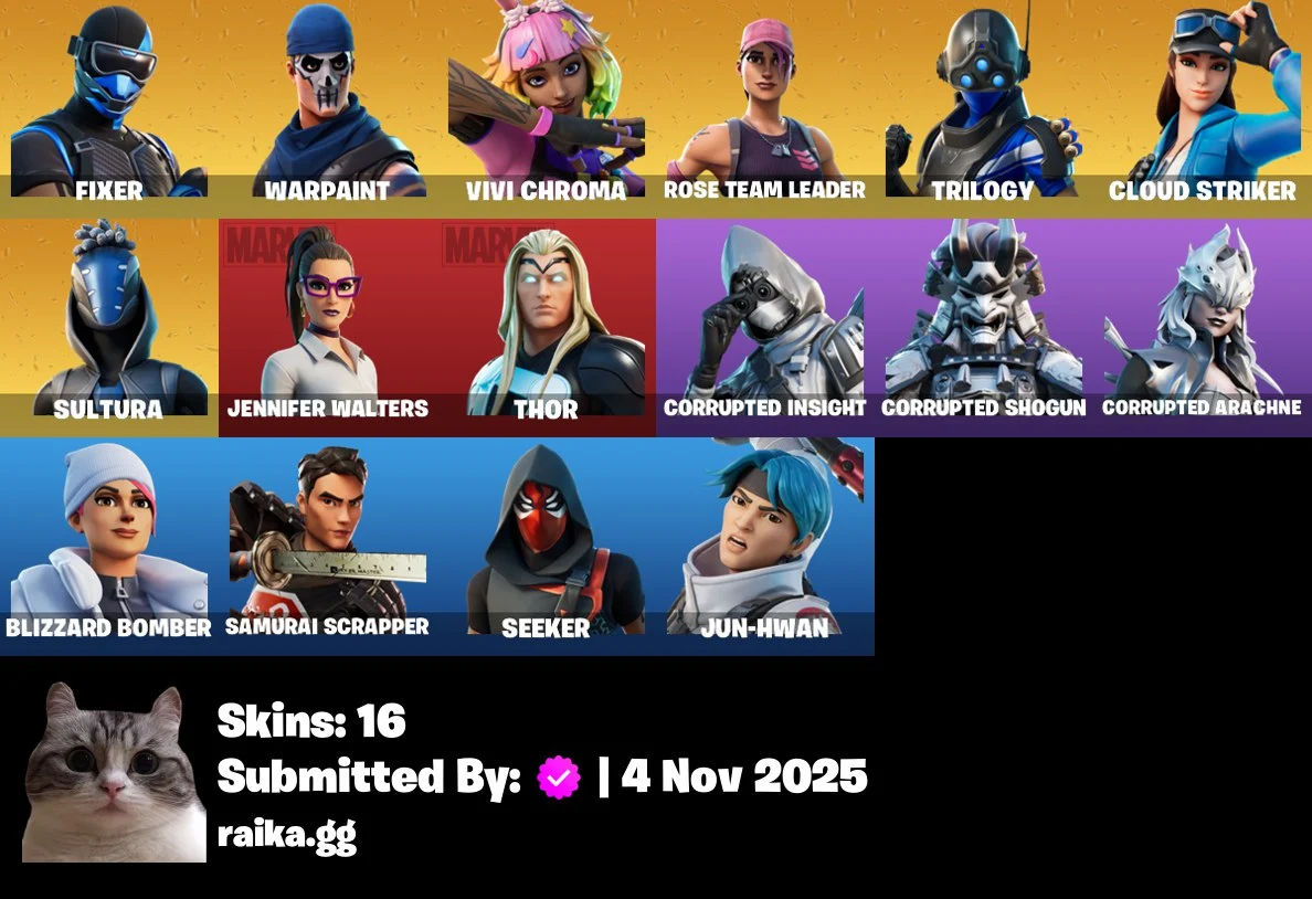 [PC/PSN/XBOX] 16 skins | OG STW | Fixer | Vivi Chroma | Trilogy | Cloud Striker | Sultura | Jennifer Walters | Thor | Corrupted Insight | Corrupted Sh