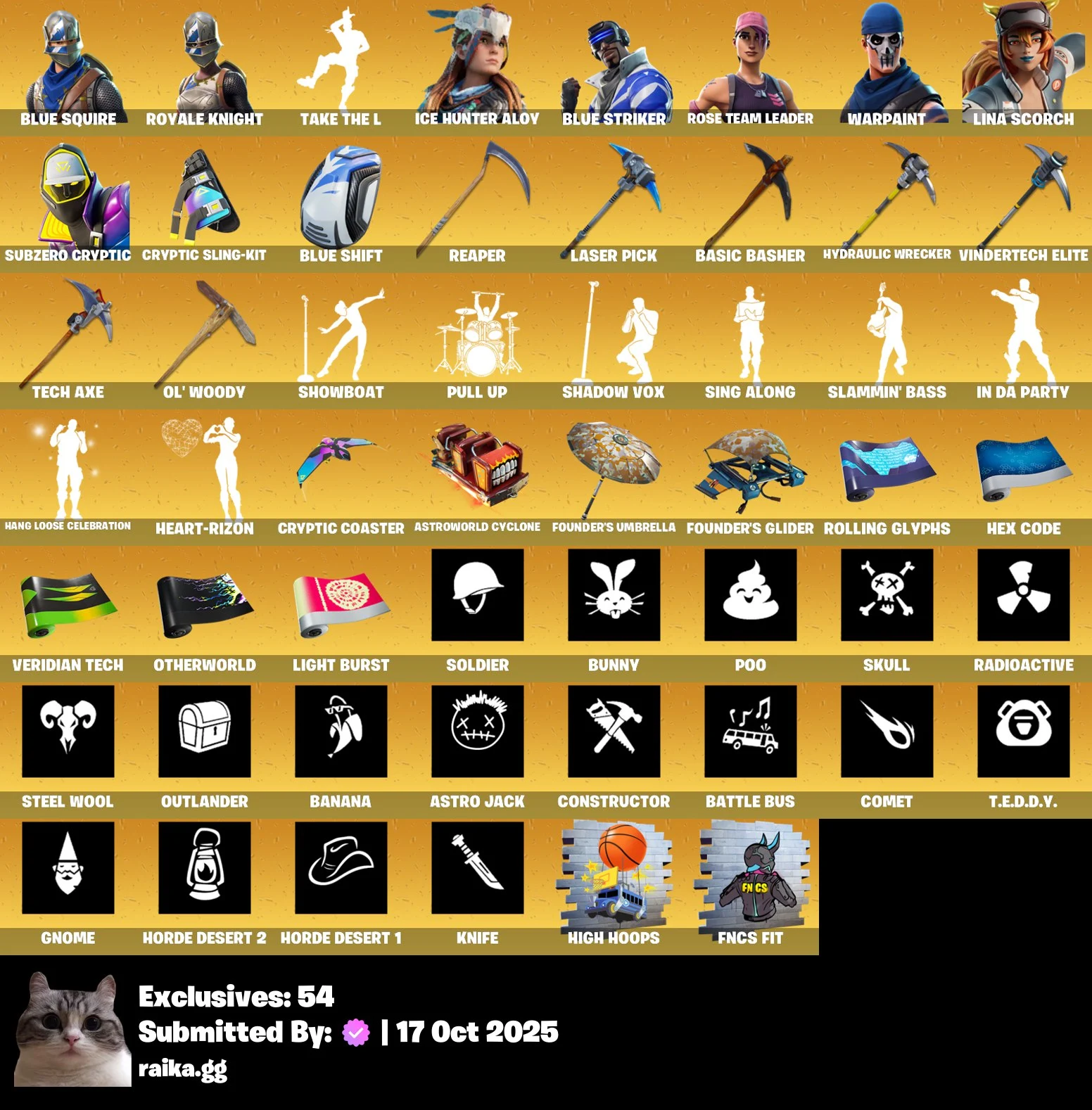 [PC/PSN/XBOX] 164 skins | OG STW | Blue Squire | Royale Knight | Blue Striker | Lina Scorch | Subzero Cryptic | off | On | Combat Elite | Combat Elite