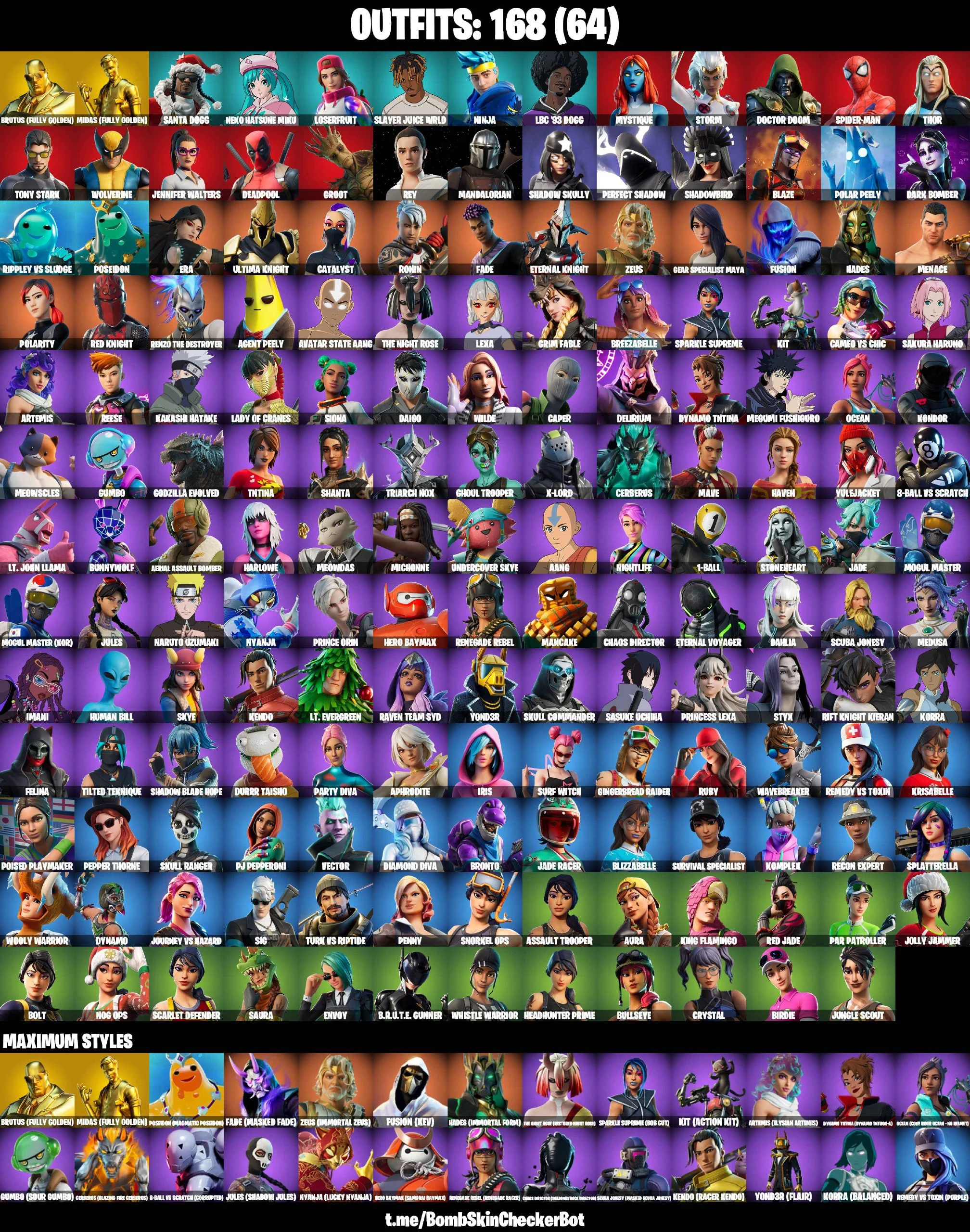 ✅PC/PSN/XBOX✅ 168 Skins✅ Spiderman, Midas (Golden), Head Banger, Ghoul Trooper, Star Wand, Tony Stark, Naruto Uzumaki , Sasuke Uchiha✅Full Access