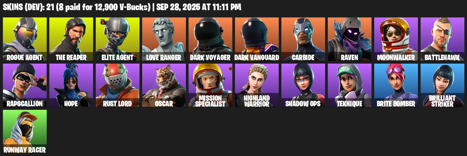 [PC/PSN/XBOX] | 21 skins | Take The L | The Reaper | Elite Agent | Rogue Agent | Love Ranger | Dark Voyager | Dark Vanguard | Carbide | Raven | S4G