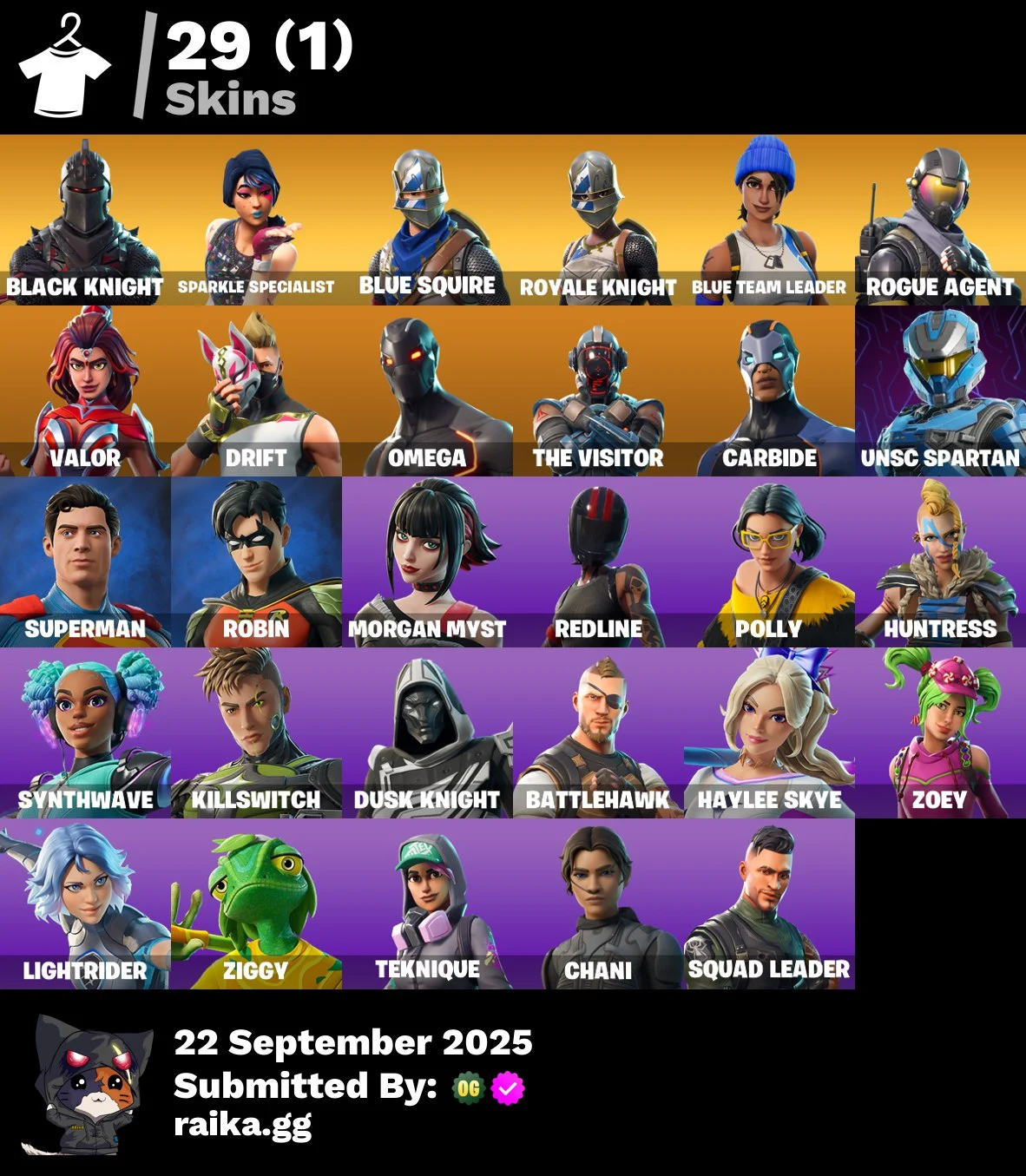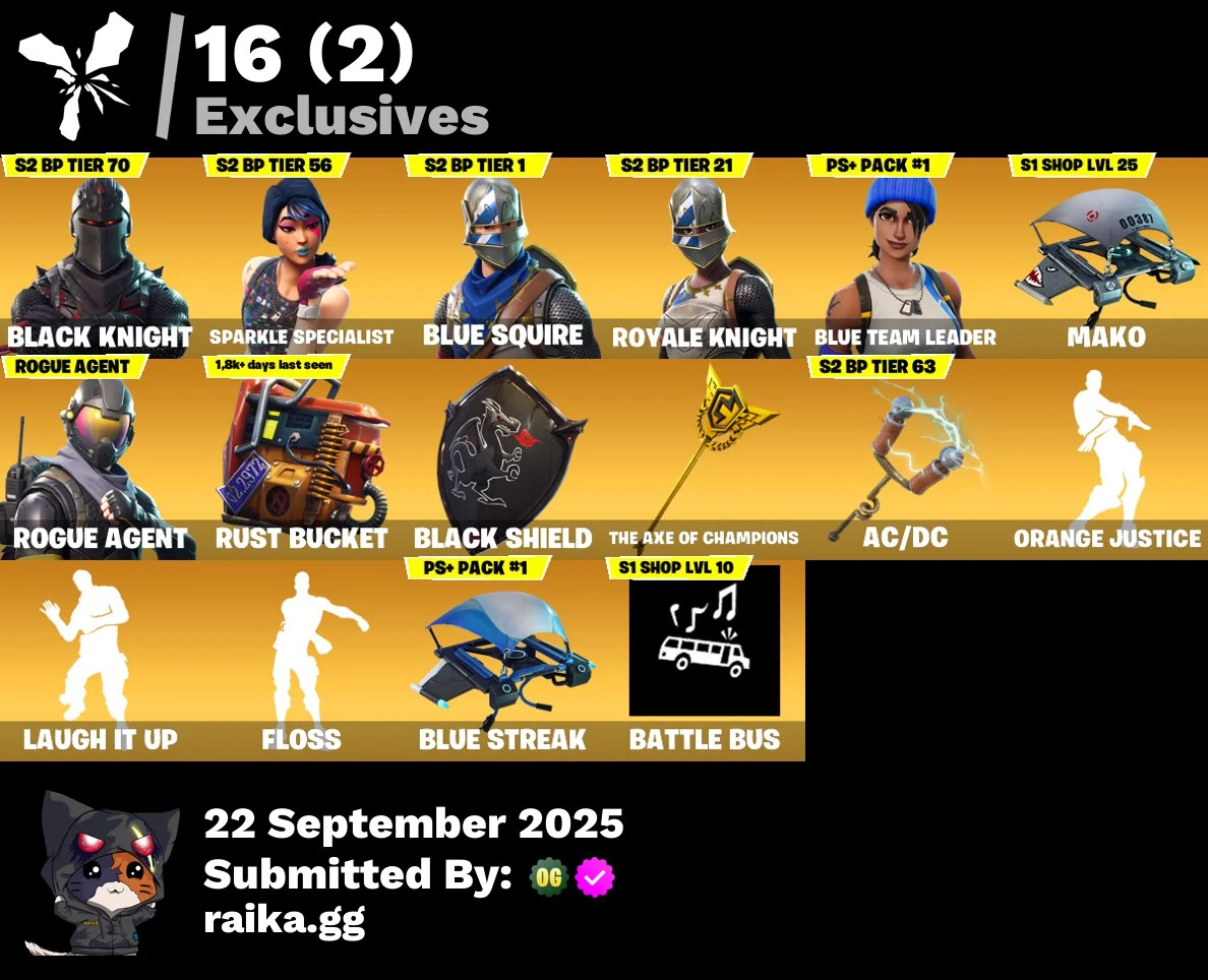 [PC/PSN/XBOX] 29 skins | Black Knight | Sparkle Specialist | Blue Squire | Royale Knight | Blue Team Leader | Rogue Agent | Valor | Drift | Omega | 600 VB
