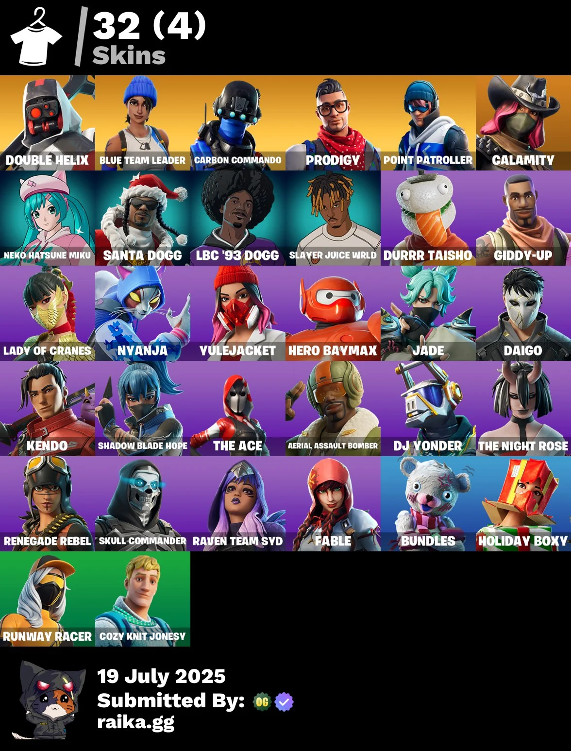 [PC/PSN/XBOX] 32 skins | Double Helix | Blue Team Leader | Carbon Commando | Prodigy | Point Patroller | Calamity | Neko Hatsune Miku | Santa Dogg | 400 VB