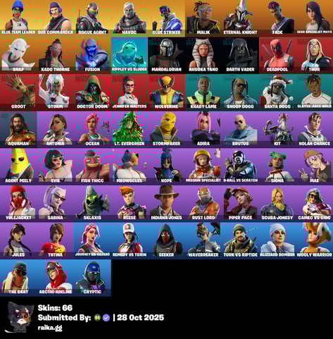 [PC/PSN/XBOX] 390 skins | OG STW | Travis Scott | Astro Jack | Renegade Raider | Gold TNTina | Gold Brutus | Gold Meowscles | Gold Midas | Unchained Ramirez | 1650 VB
