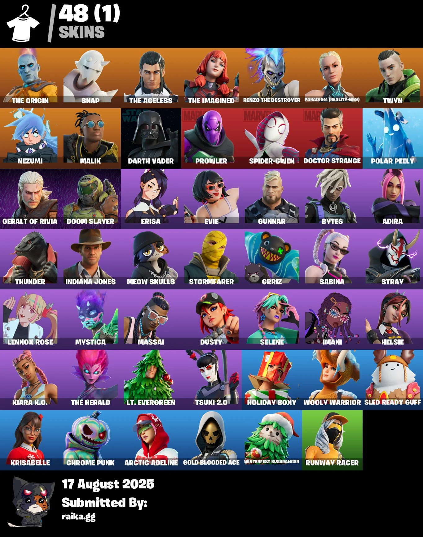 [PC/PSN/XBOX] 48 skins | Reaper | Astroworld Cyclone | Astro Jack | The Origin | Snap | The Ageless | The Imagined | Renzo the Destroyer | 150 VB