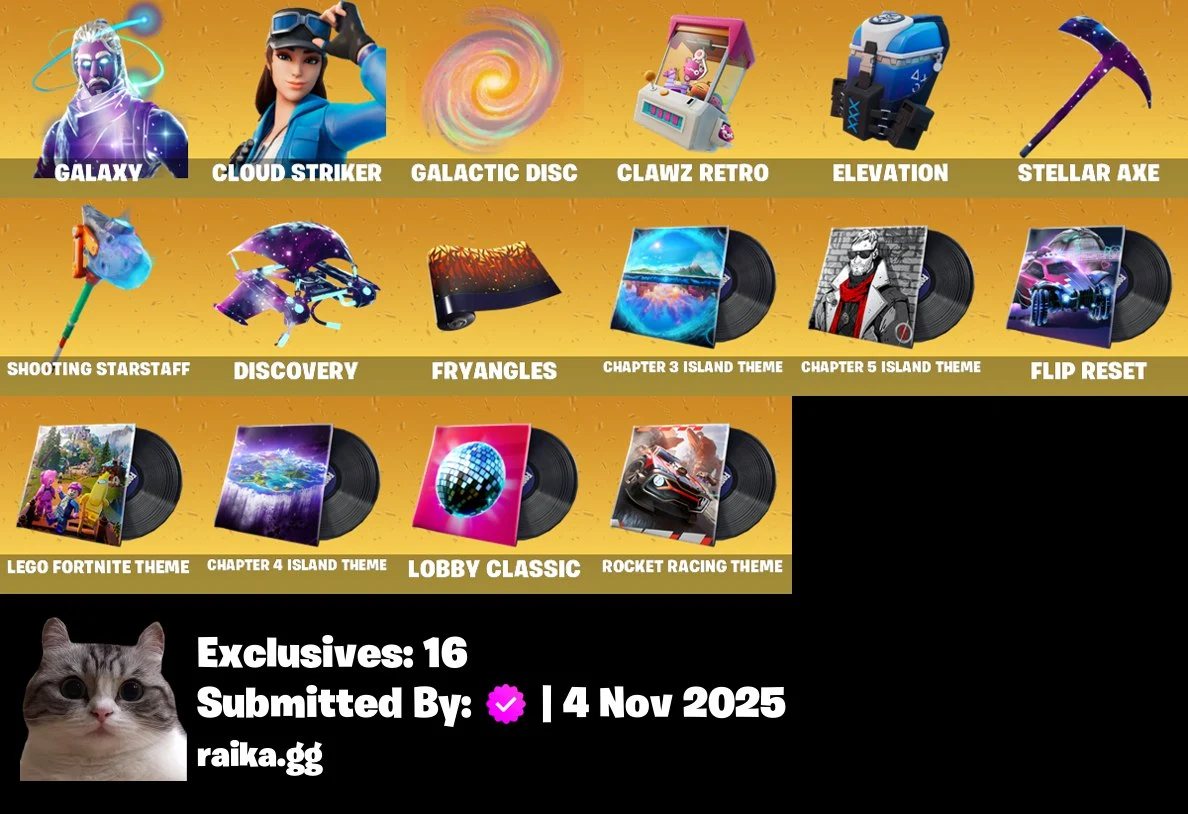 [PC/PSN/XBOX] 5 skins | Galaxy | Cloud Striker | Trailblazer Tai | Holiday Boxy | Runway Racer | Galactic Disc | Clawz Retro | Elevation | Ruby Relic