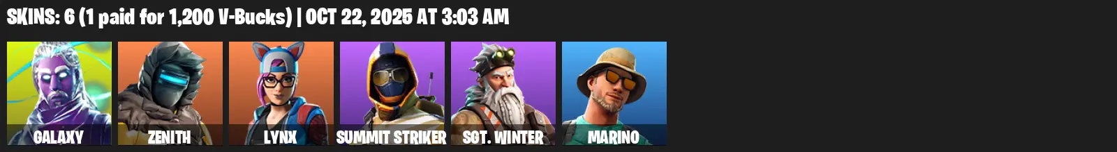 [PC/PSN/XBOX] | 6 skins | Galaxy | Zenith | Lynx | Summit Striker | Sgt. Winter | Marino | Stellar Axe | Scorcher | Scratchmark | S4G