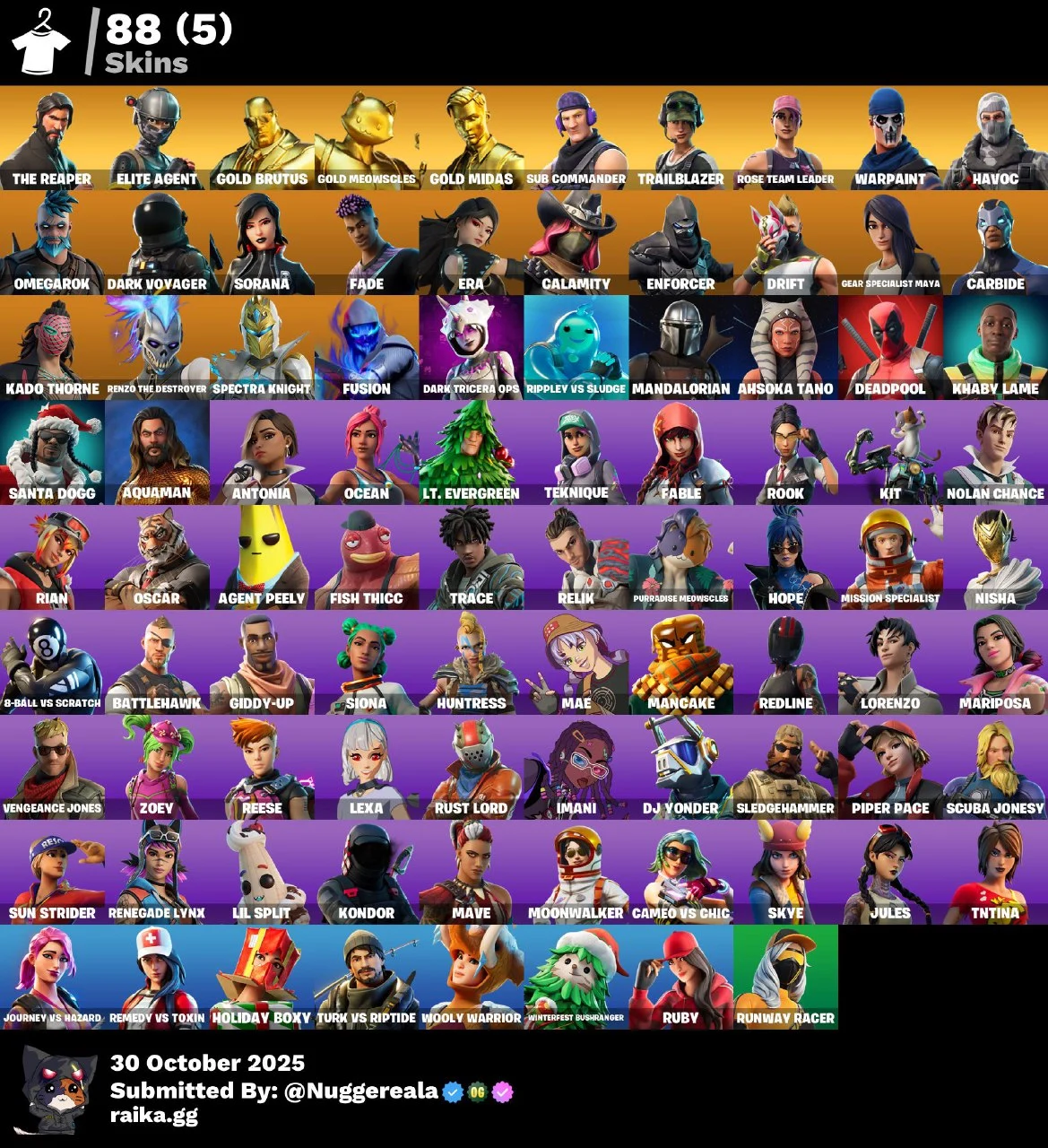 [PC/PSN/XBOX] 88 skins | OG STW | The Reaper | Elite Agent | Gold Brutus | Gold Meowscles | Gold Midas | Sub Commander | Trailblazer | Havoc | Omegarok | 1450 VB