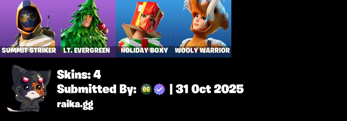 [PC/PSN/XBOX] 900 VBUCKS | 4 skins | Summit Striker | Lt. Evergreen | Holiday Boxy | Wooly Warrior | Lunar Hyperjet | Arroyo Pack | Spectra Protector | Nemesis Box