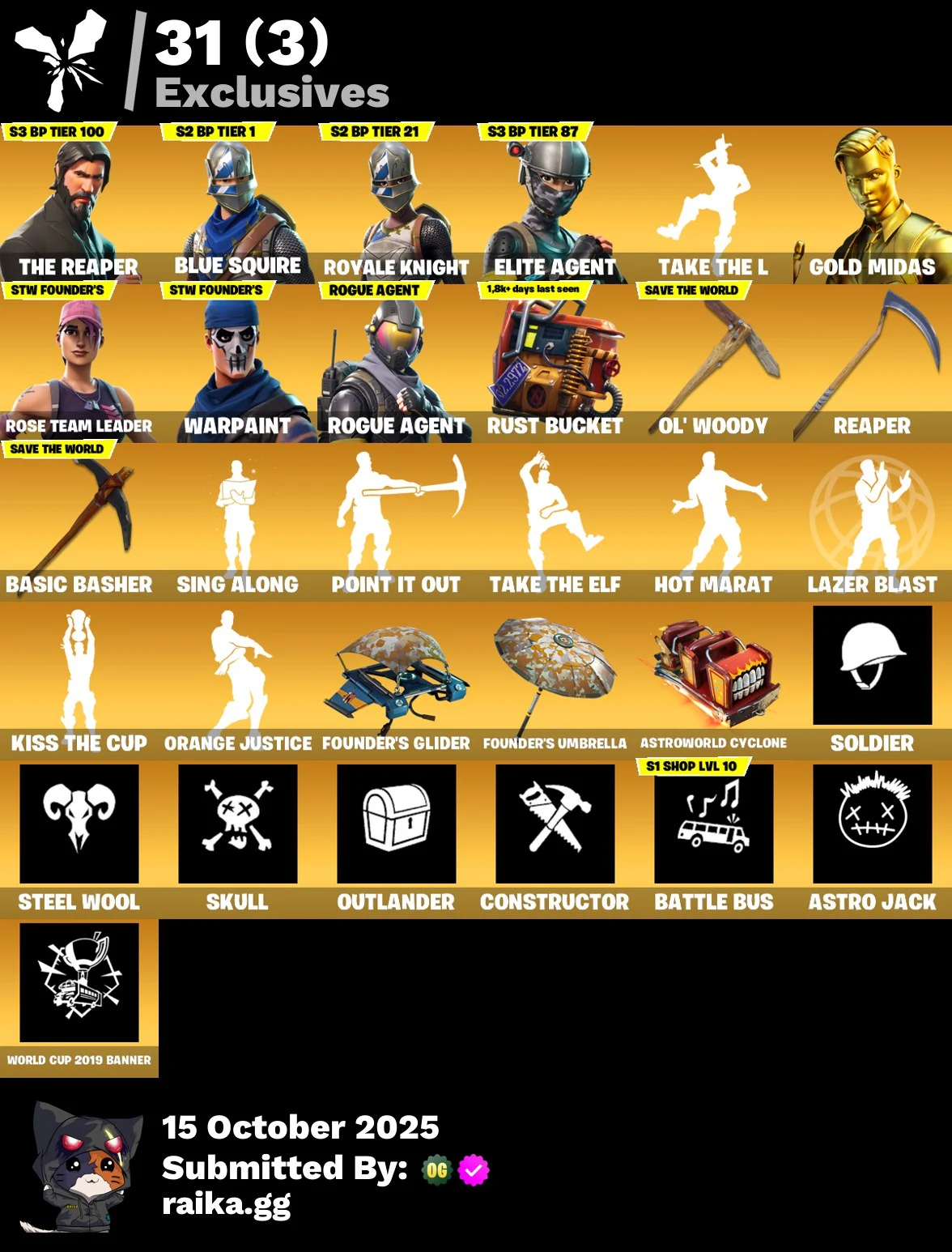 PC/PSN/Xbox/Nintendo 121 skins | OG STW | The Reaper | Blue Squire | Royale Knight | Elite Agent | Gold Midas | Rogue Agent | Drift | Lynx | The Ice King | 1550 VB