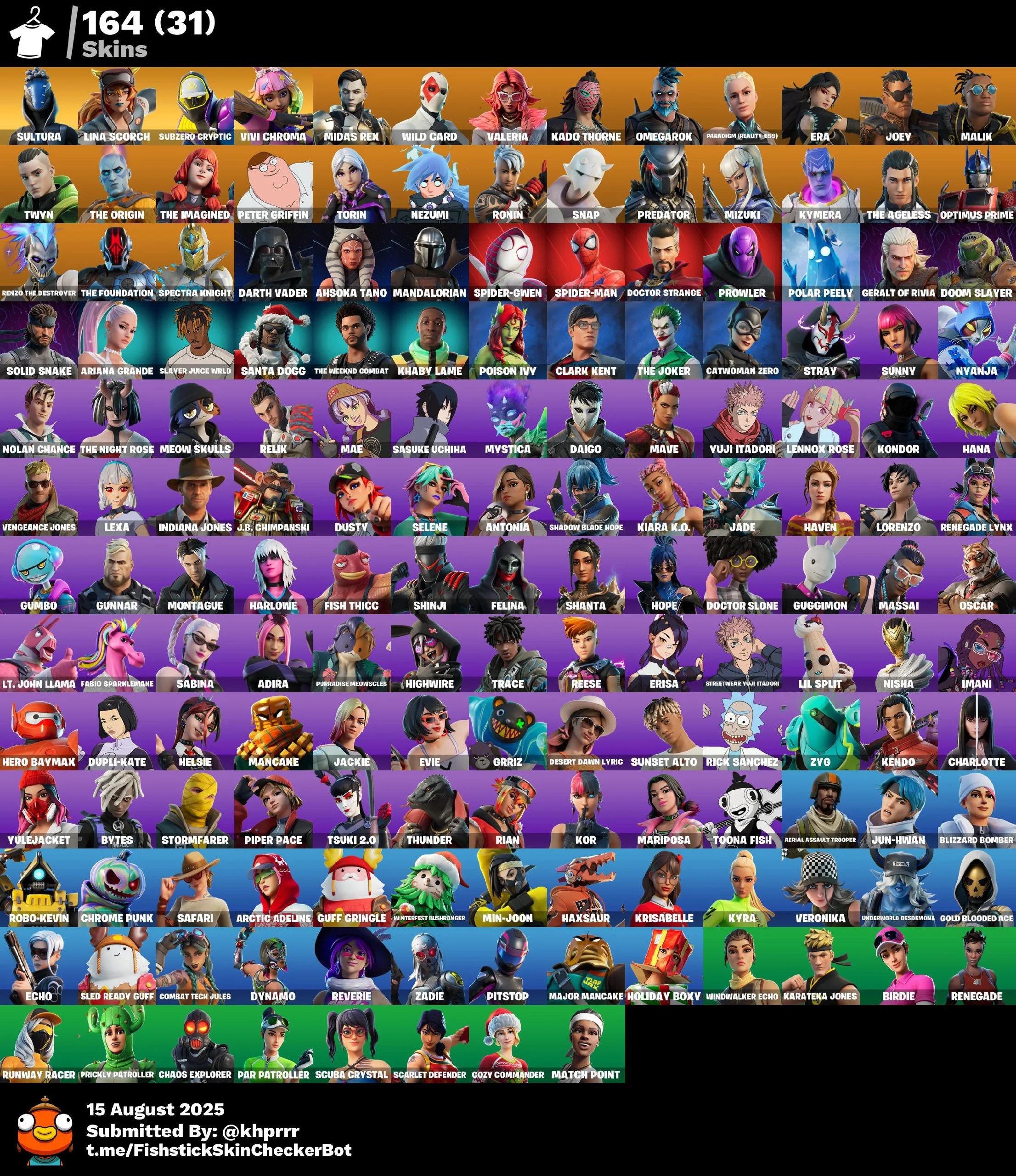 *[PC/PSN/XBOX/Nintendo] 164 skins PSN: 900 VB F/A : Sasuke Uchiha | Sultura | Lina Scorch | Subzero Cryptic | Vivi Chroma | Mountaineer's Must-Haves | Cryptic Sling-kit | Future Relic Scythe | Reaper
