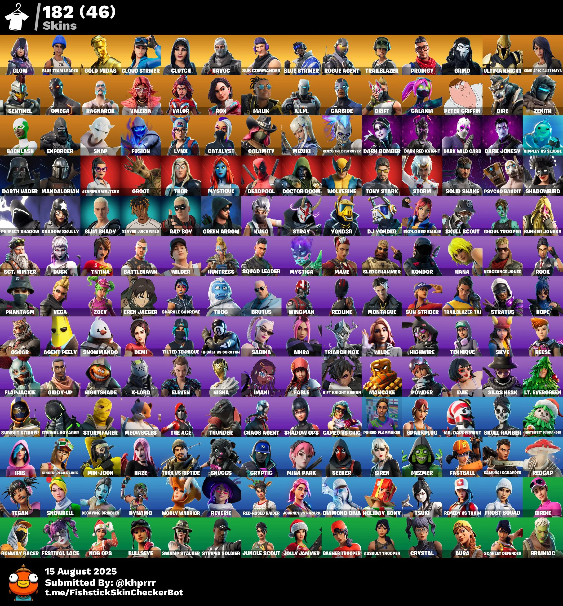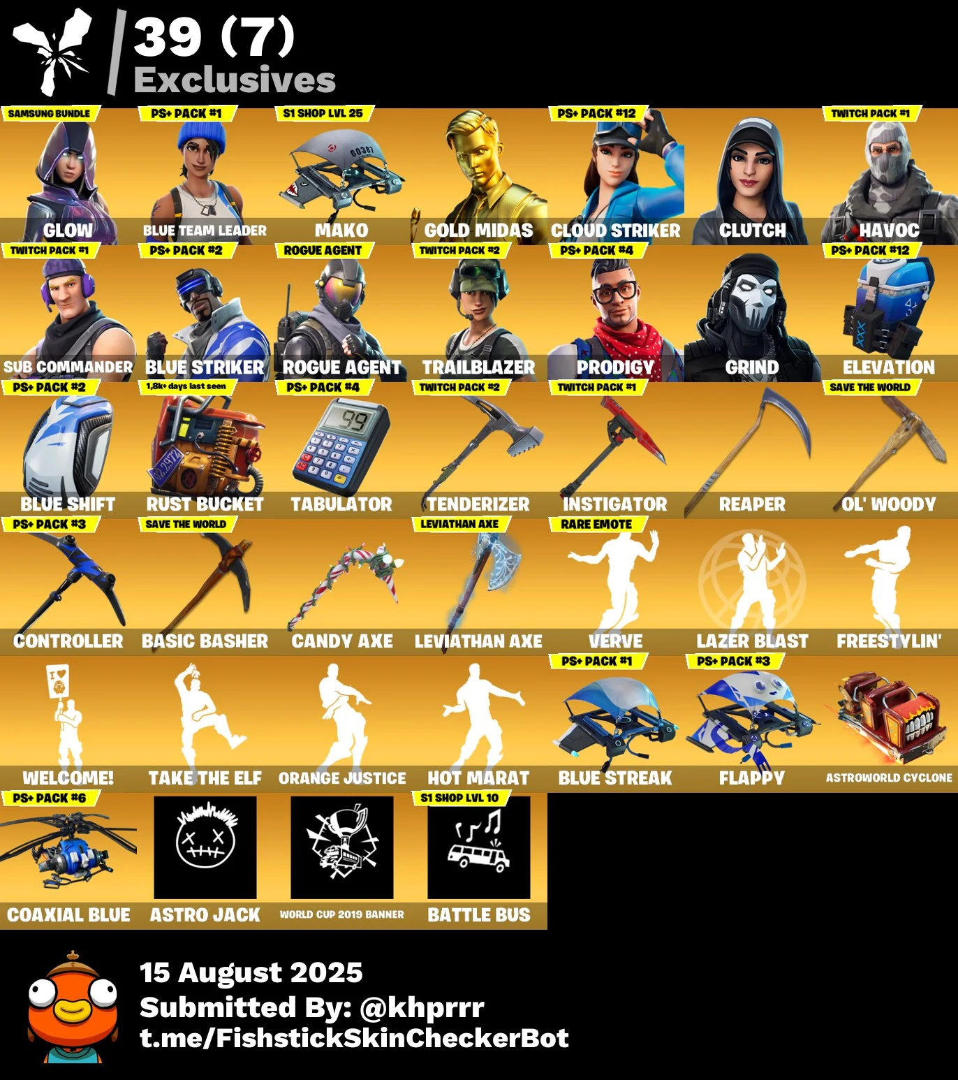 **[PC/PSN/XBOX/Nintendo] 182 skins F/A : Psycho Bandit | Leviathan Axe | Mako | Glow | Blue Team Leader | Gold Midas | Cloud Striker | Clutch | Havoc | Sub Commander | Blue Striker | Rogue Agent | Trailblazer