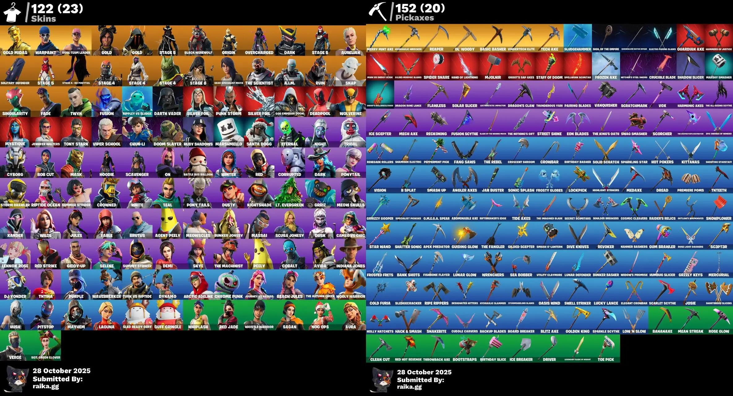[PC/XBOX] 122 skins Gold MidAS | OG STW | Merry Mint Axe | Chun-Li | Jules | Aura | Tony Stark | Peely | Beach Jules | Deadpool Ag16