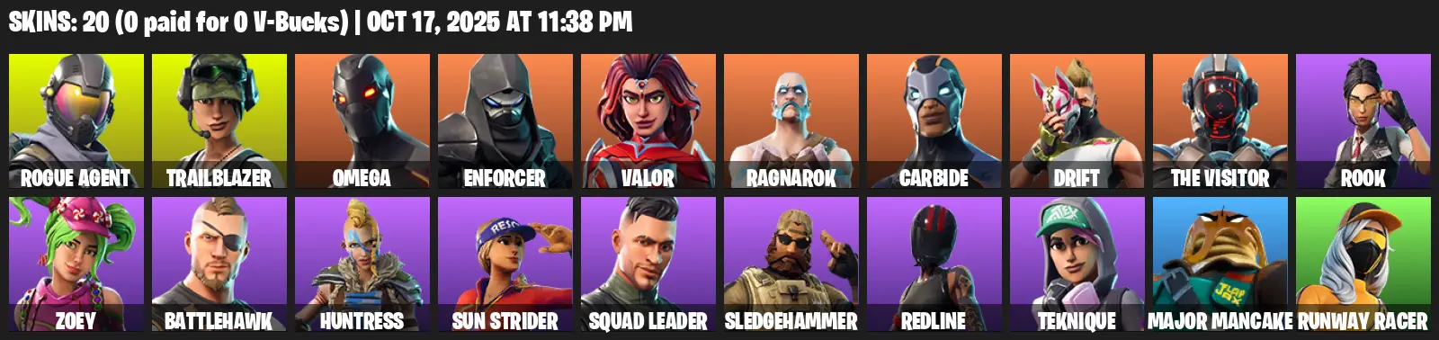 [PC/XBOX] | 20 skins | Omega | Mako | Rogue Agent | Trailblazer | Enforcer | Valor | Ragnarok | Carbide | Drift | The Visitor | Rook | Zoey | S4G