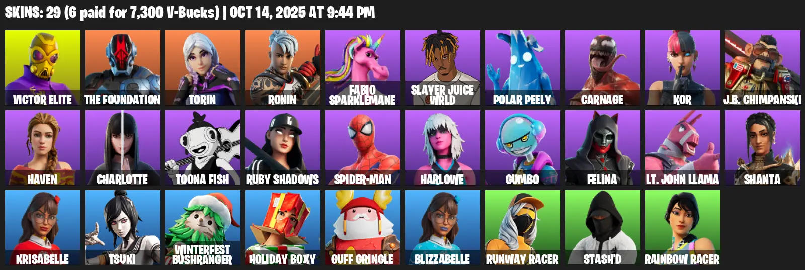 [PC/XBOX] | 29 skins | Reaper Axe | Victor Elite | The Foundation | Torin | Ronin | Fabio Sparklemane | Slayer Juice WRLD | Polar Peely | S4G