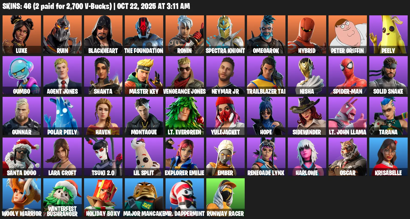 [PC/XBOX] | 46 skins | Lara Croft | Luxe | Ruin | Blackheart | The Foundation | Ronin | Spectra Knight | Omegarok | Hybrid | Peter Griffin | S4G