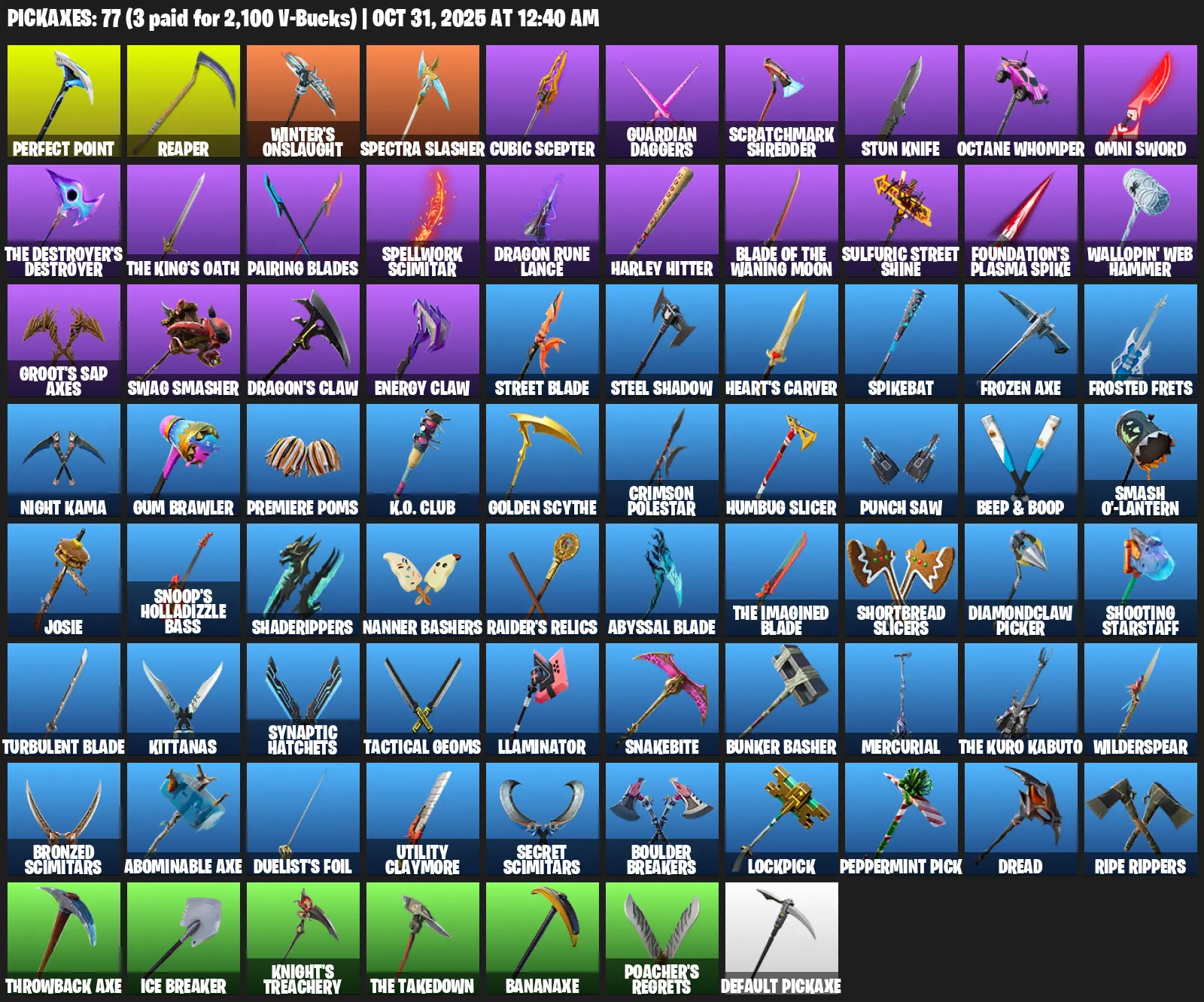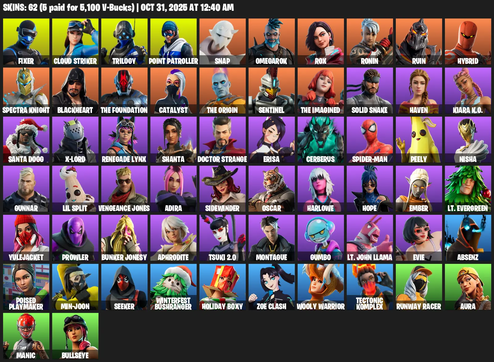 [PC/XBOX] | 62 skins | 600 V-bucks | Reaper Axe | Fixer | Cloud Striker | Trilogy | Point Patroller | Snap | Omegarok | Rox | Ronin | #BGY6306 | #MBFN