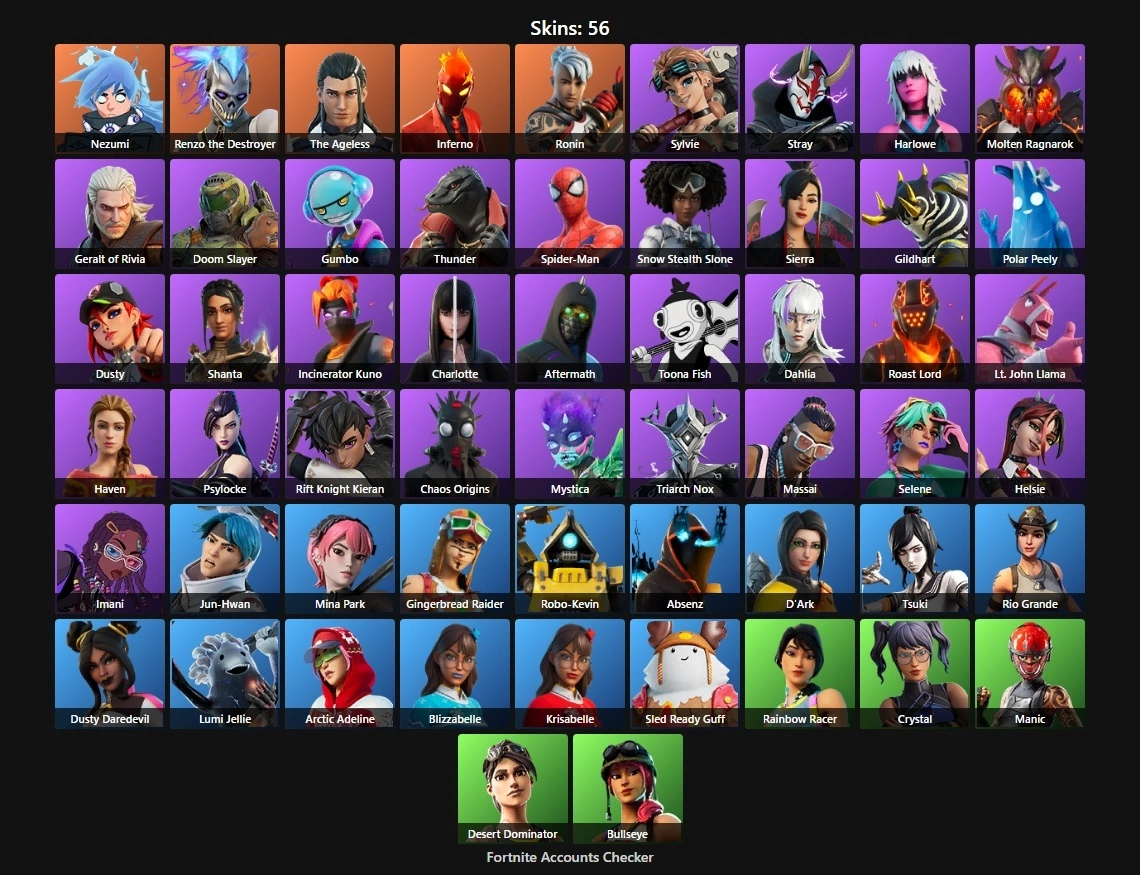 PC/XBOX/PSN 56 Skins⚡ | Nezumi | Renzo the Destroyer | The Ageless | Inferno | Ronin | Sylvie | Stray | Harlowe | Molten Ragnarok | Geralt of Rivia