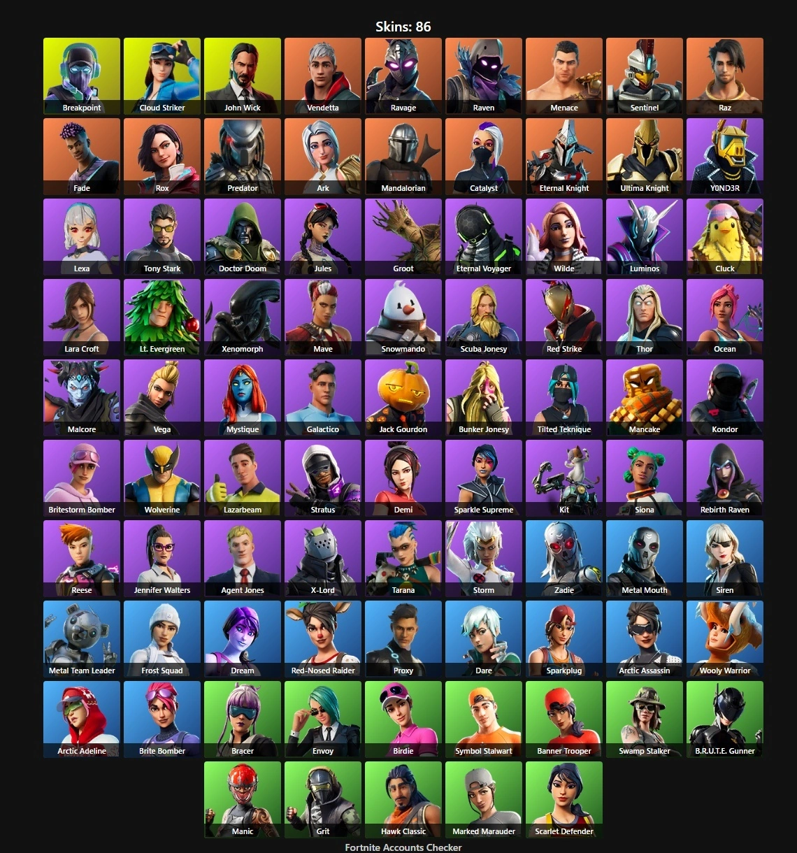 PC/XBOX/PSN 86 Skins⚡ | Lara Croft | Breakpoint | Cloud Striker | John Wick | Vendetta | Ravage | Raven | Menace | Sentinel | Raz | Fade | Rox | Predator