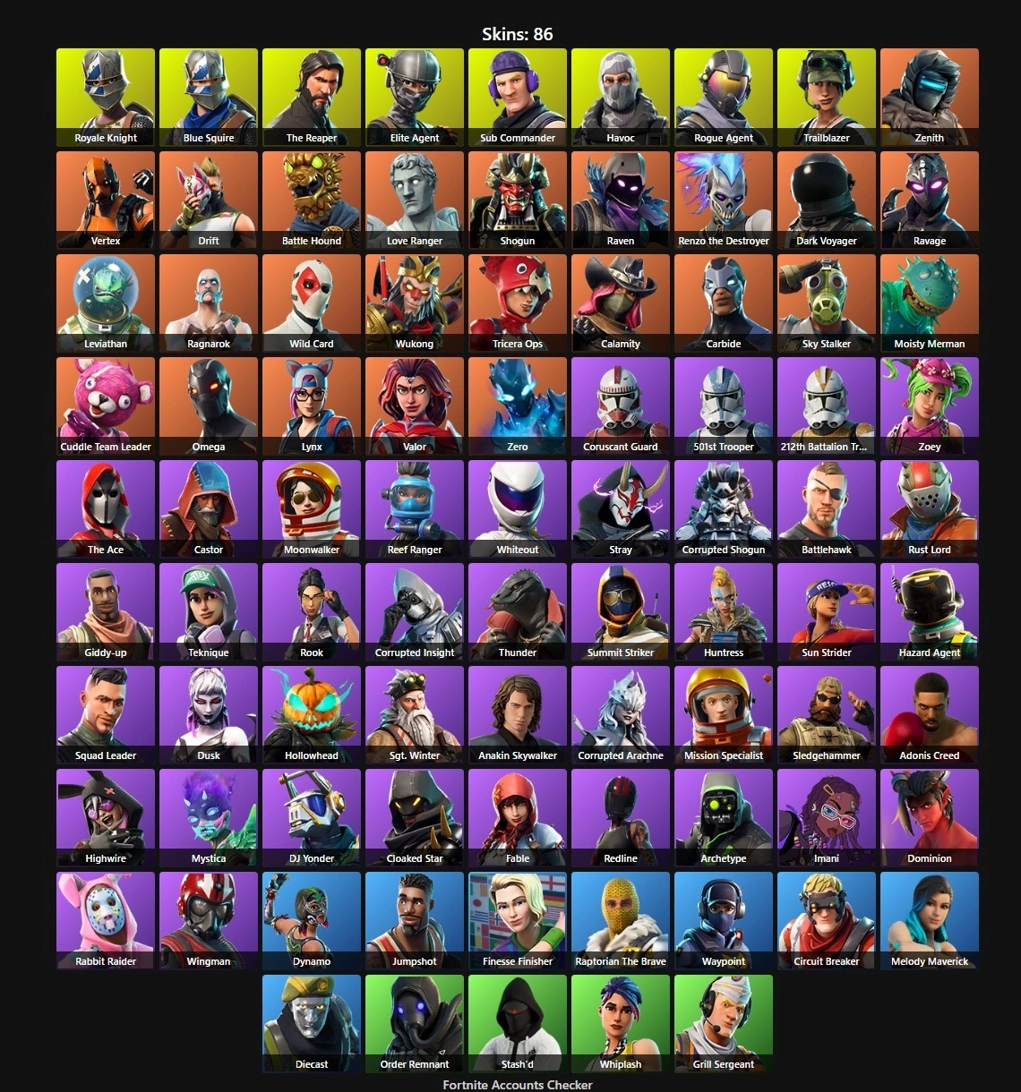 PC/XBOX/PSN 86 Skins⚡ | Royale Knight | Blue Squire | The Reaper | Elite Agent | Havoc | Trailblazer | Omega | Sub Commander | Rogue Agent | Zenith | Vertex