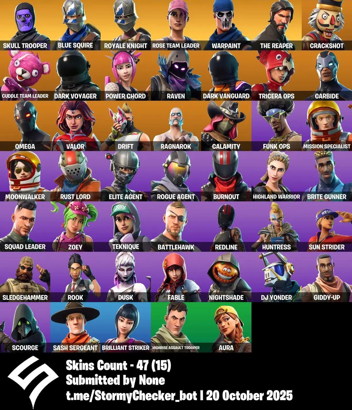 [PC/XBOX/PSN] | 47 Skins | OG STW | Purple Skull Trooper| OG Skull Trooper | Blue Squire | Royale Knight | Rose Team Leader | Warpaint | Rose Glow | Mean Streak | Ol' Woody
