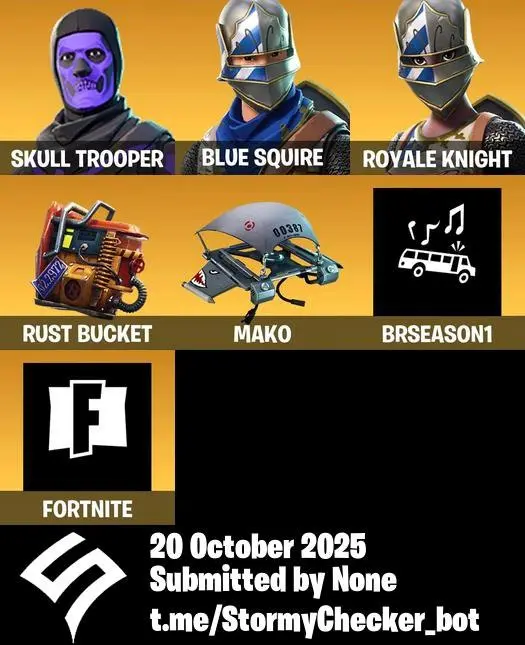 [PC/XBOX/PSN] | 5 Skins | OG Skull Trooper | Blue Squire | Royale Knight | Nog Ops | Alpine Ace (FRA) | Default Pickaxe | Lucky | Death Valley