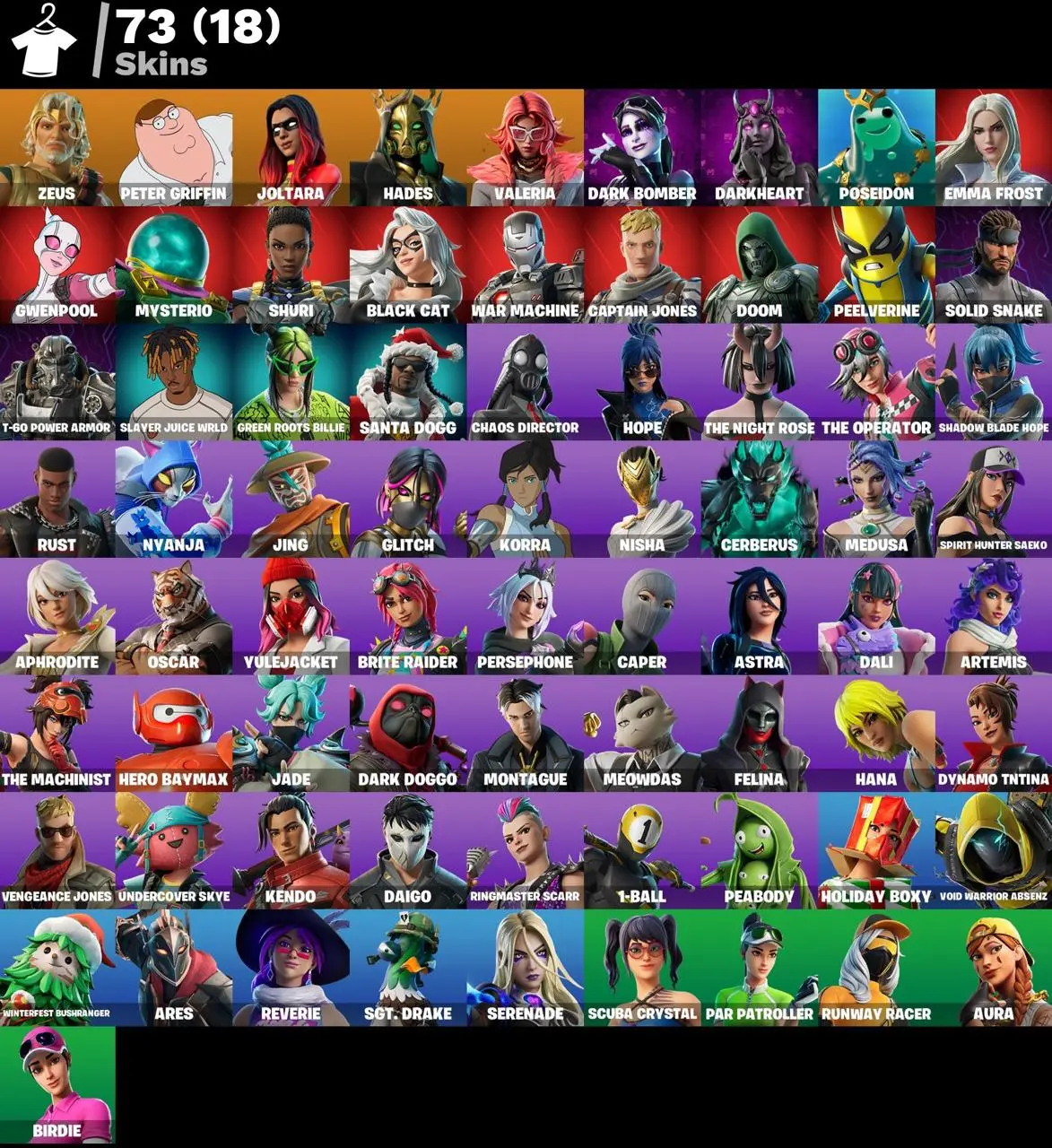 PSN-PC-XBOX FA 73 SKINS ⸱ JOLTARA ⸱ PEABODY ⸱ DARK BOMBER ⸱ GLITCH ⸱ KORRA ⸱ CAPER ⸱ SERENADE ⸱ GREEN BILLIE ZK585